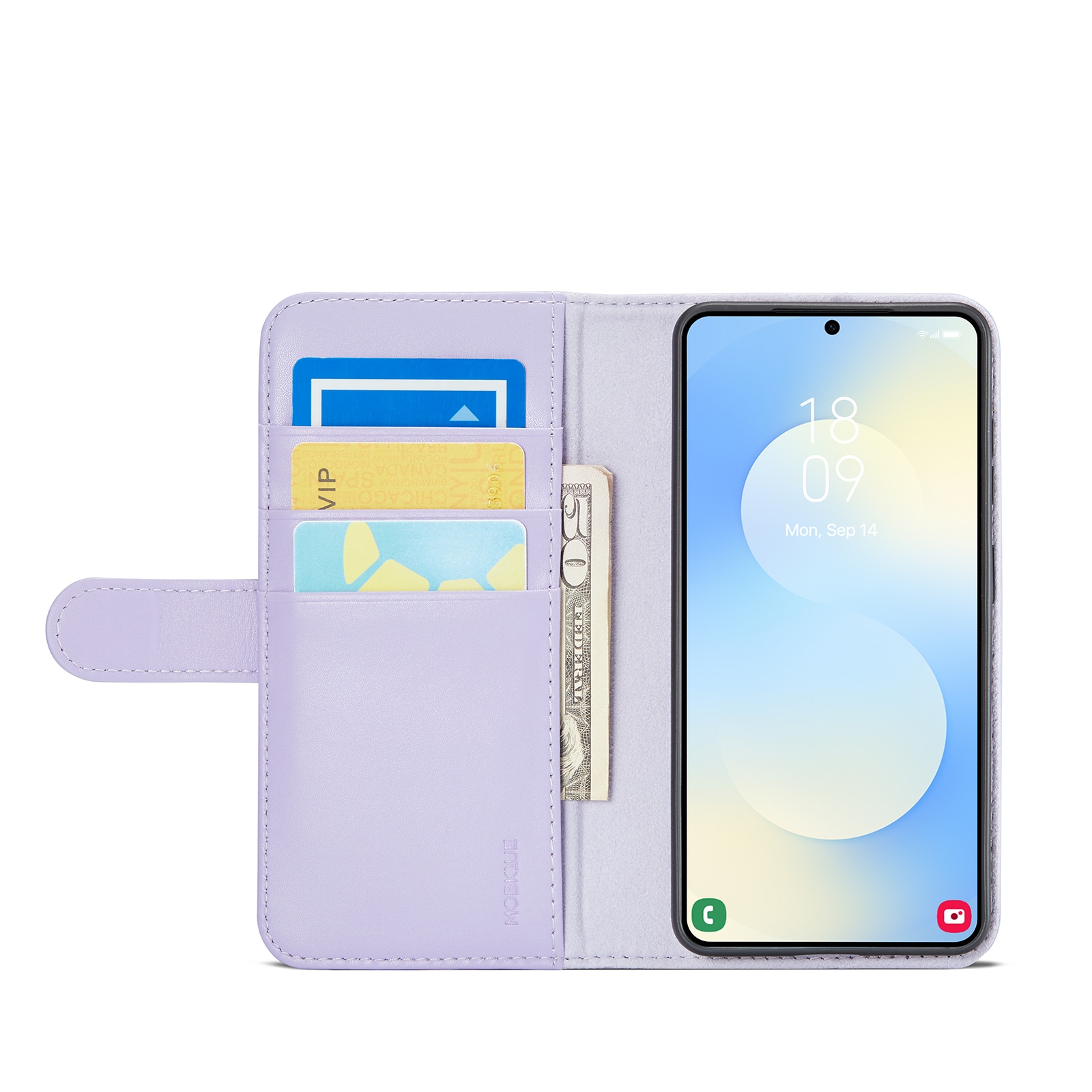 Mobilfodral i äkta läder till Samsung Galaxy S26 från Mobique. Fodralet skyddar runt hela din telefon och har en rymlig plånbok på insidan av locket. Plånboken är rymlig med tre kortfack och en sedelficka.