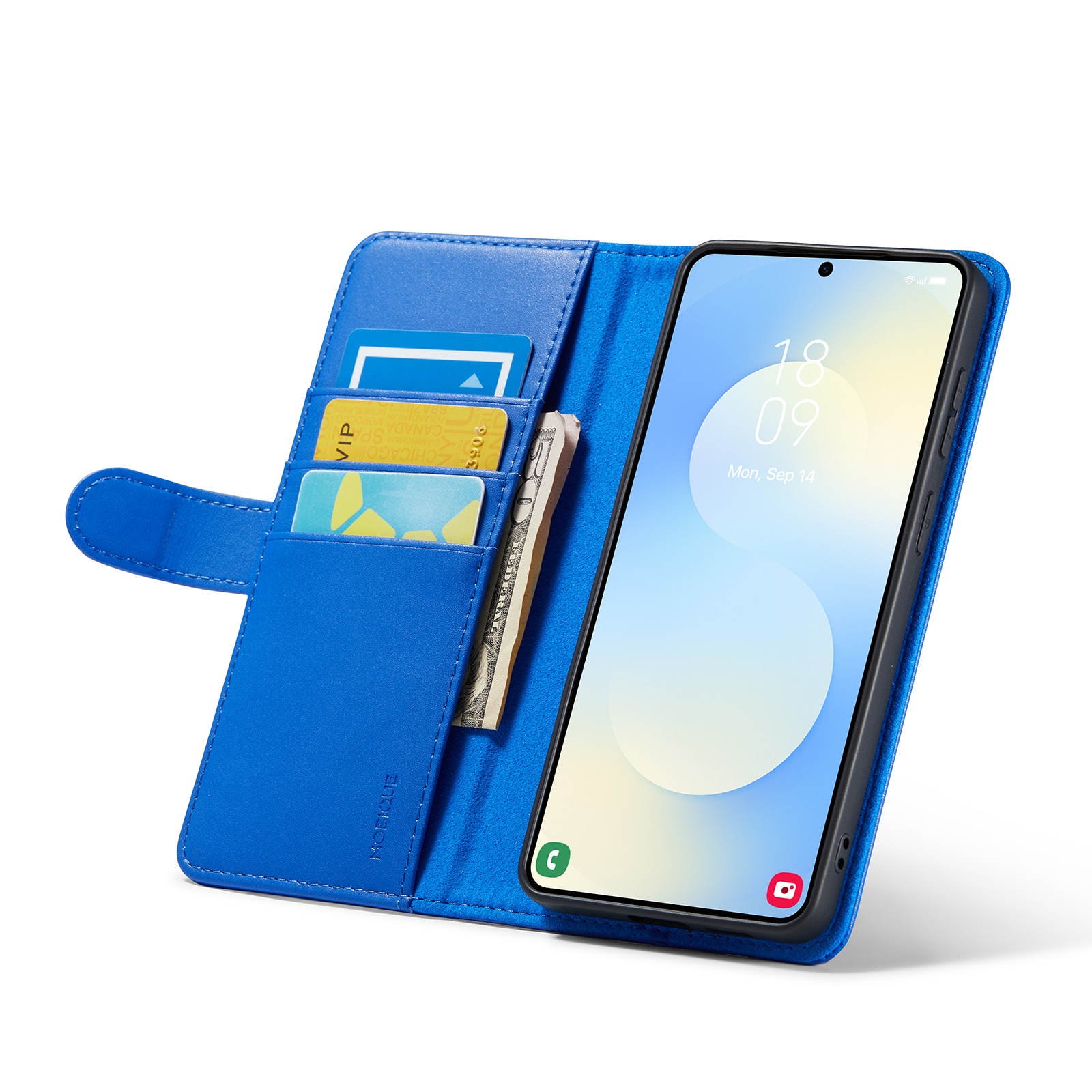 Mobilfodral i äkta läder till Samsung Galaxy S26 Plus från Mobique. Fodralet skyddar runt hela din telefon och har en rymlig plånbok på insidan av locket. Plånboken är rymlig med tre kortfack och en sedelficka.