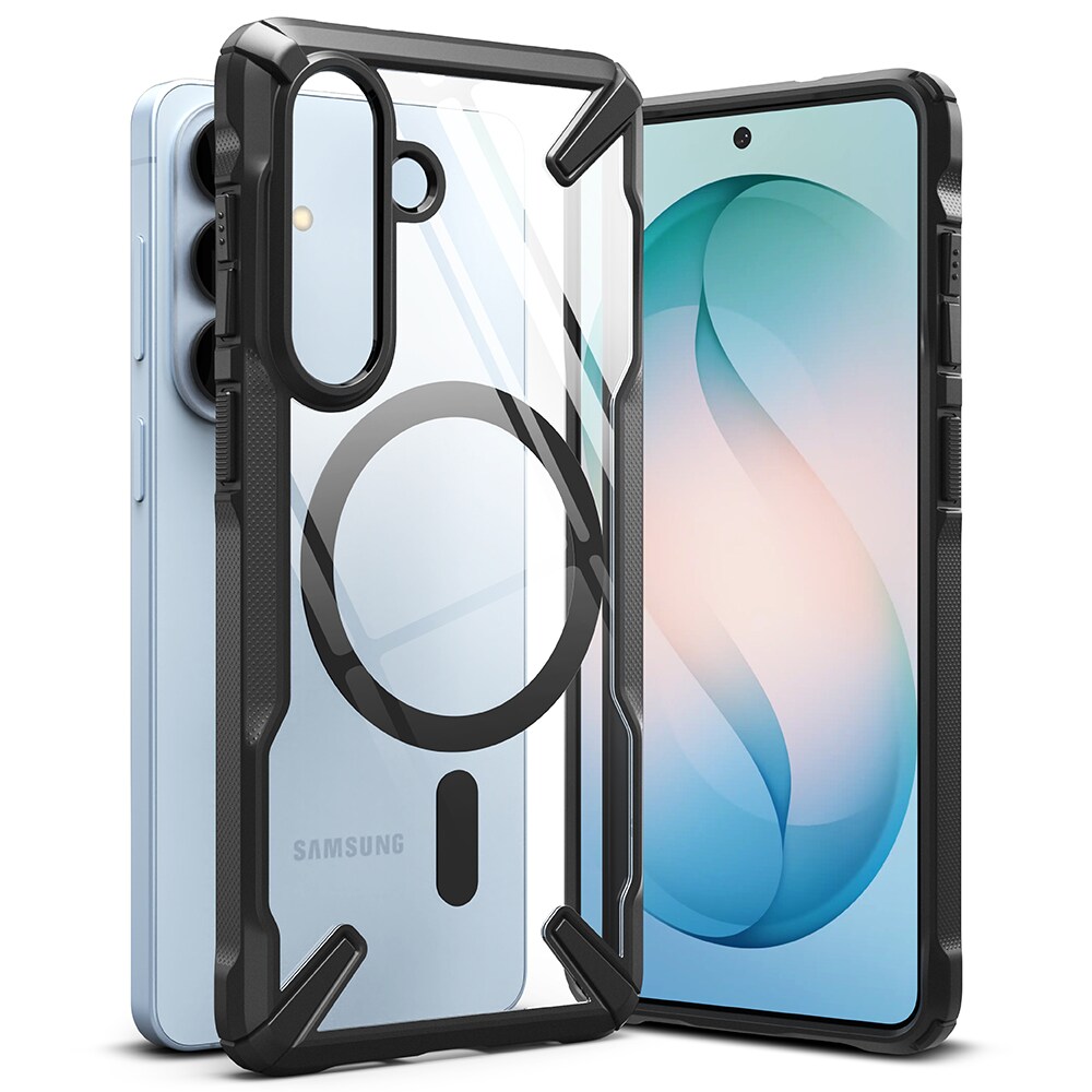 Stötskyddande Fusion X skal med stöd för MagSafe från Ringke till Samsung Galaxy S26. Ringke Fusion X ger din telefon riktigt bra stötskydd och en snygg look. För bästa skydd har skalet har en stötdämpande ram som absorberar fall och en baksida i hård polykarbonat.