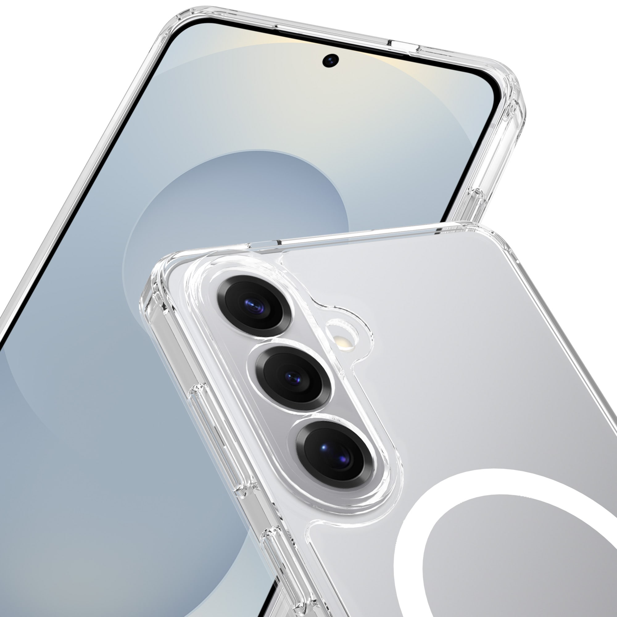 Hybridskal med magnetisk ring till Samsung Galaxy S26 Plus. För bÀsta skydd mot stötar och fall Àr skalet tvÄdelat med en TPU-kÀrna och ett hölje i hÄrdplast. Ringen pÄ baksidan Àr magnetisk och kan anvÀndas tllsammans med MagSafe-kompatibla tillbehör sÄsom laddare och korthÄllare.