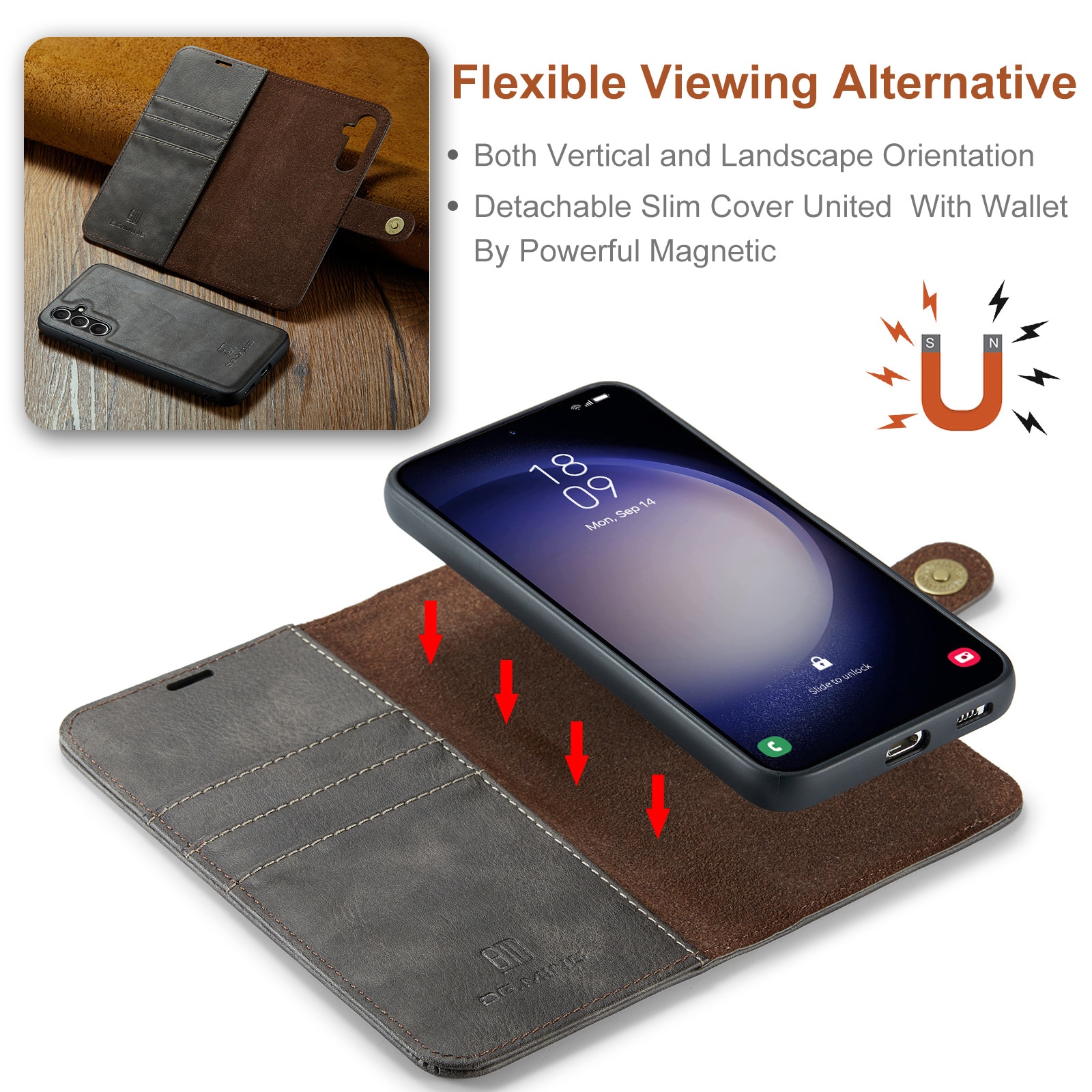 Fodral med avtagbart magnetskal till Samsung Galaxy S26 från DG.MING. Fodralet har en klassisk och stilren design. Det avtagbara skalet gör att du slipper använda hela fodralet t.ex. när du är hemma eller på jobbet.