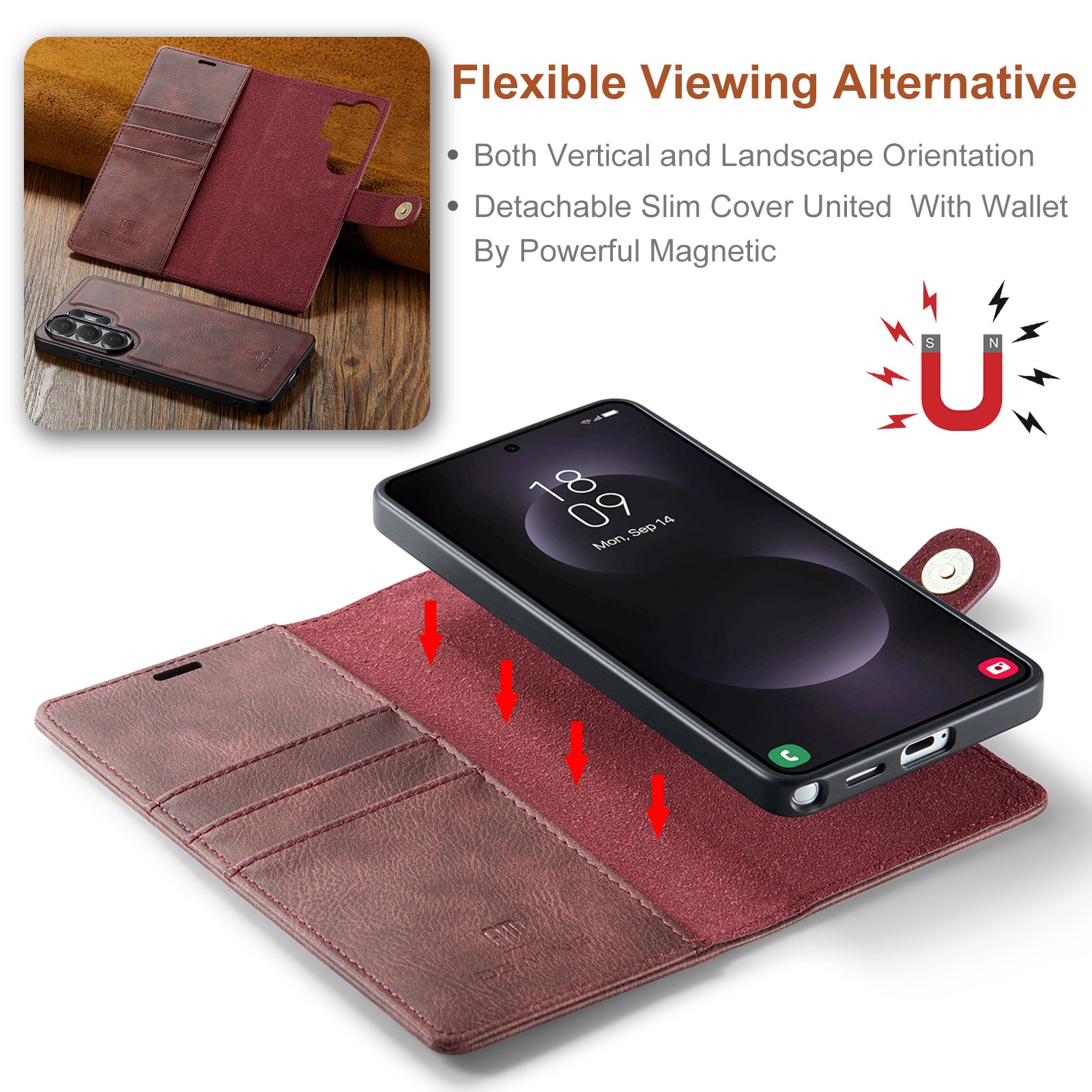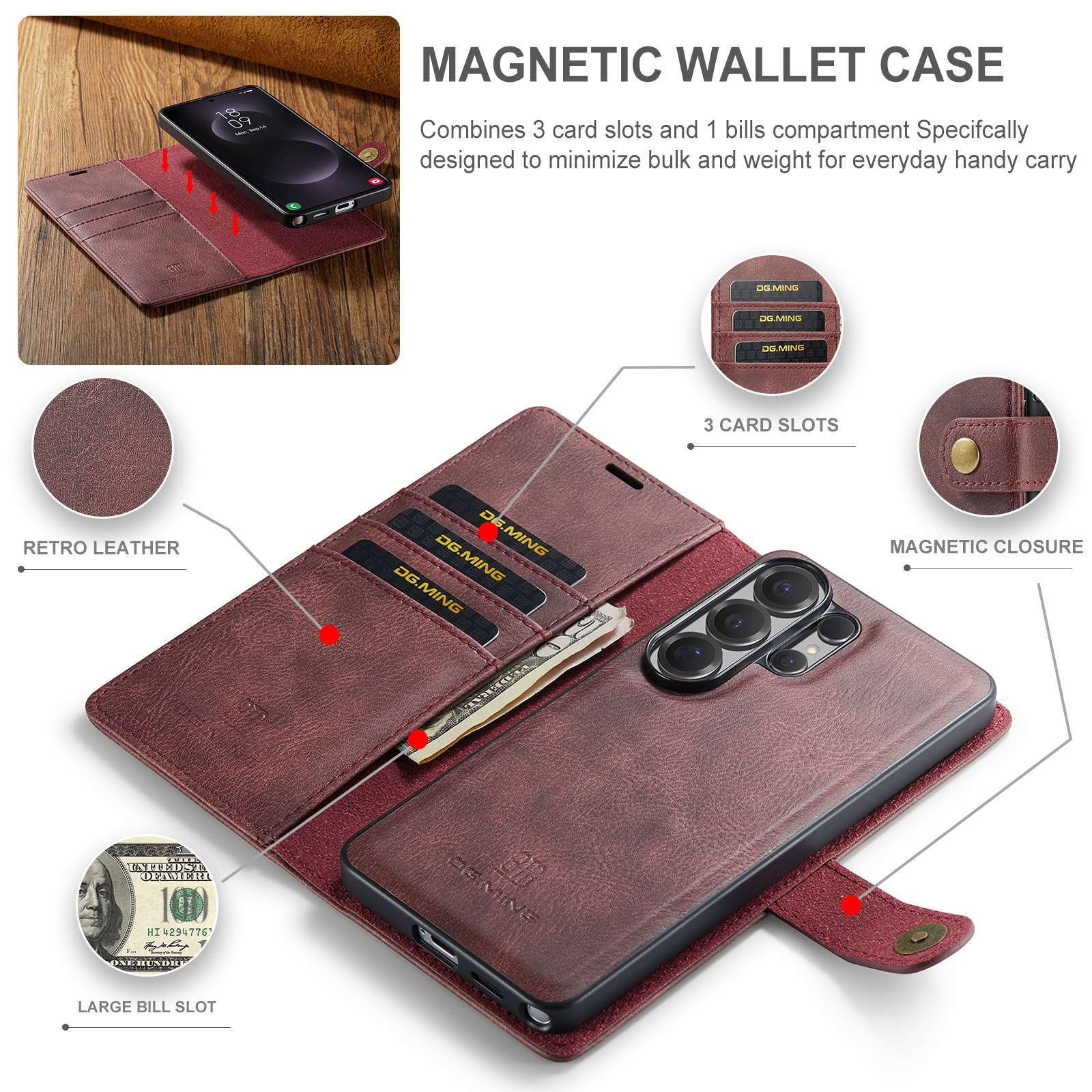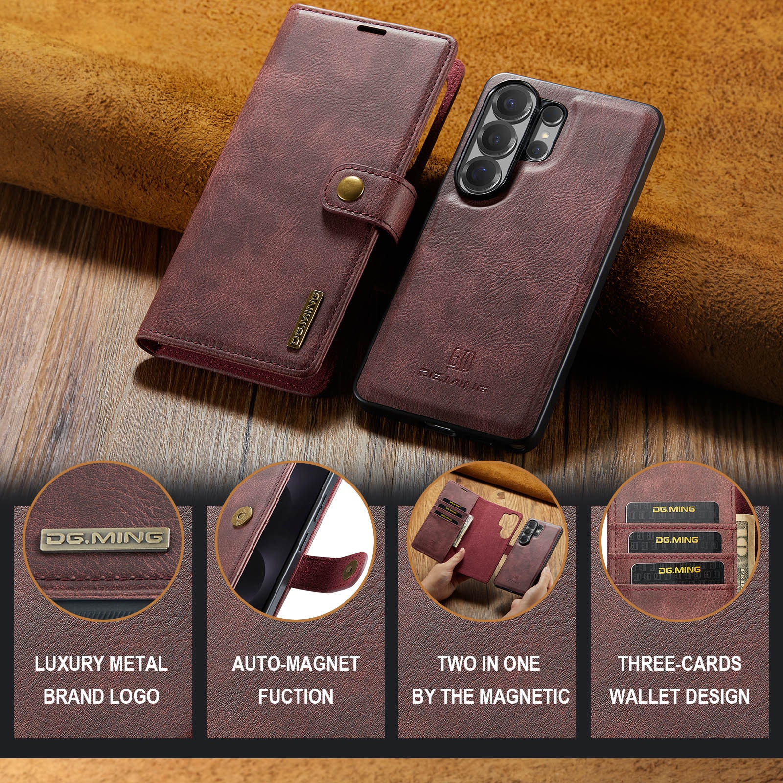 Fodral med avtagbart magnetskal till Samsung Galaxy S26 Ultra från DG.MING. Fodralet har en klassisk och stilren design. Det avtagbara skalet gör att du slipper använda hela fodralet t.ex. när du är hemma eller på jobbet.