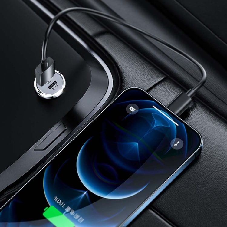 <p>- Mini billaddare med USB-A och USB-C<br />