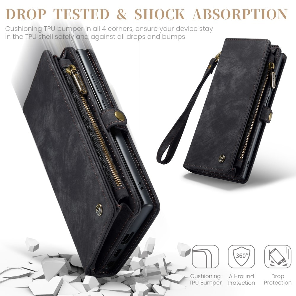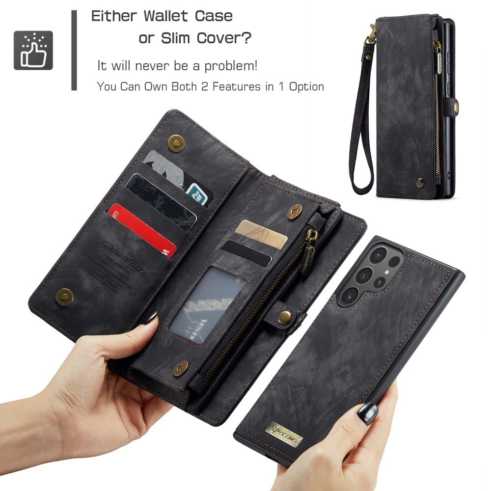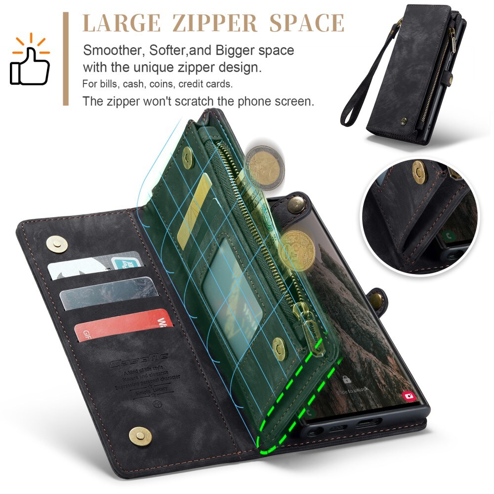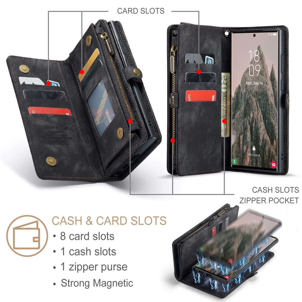Mobilfodral med magnetskal och plånbok med extra många kortplatser till Samsung Galaxy S26 Ultra från CaseMe. Den rymliga plånboken har sedelficka, myntfack med dragkedja och ett flertal kortfack.
