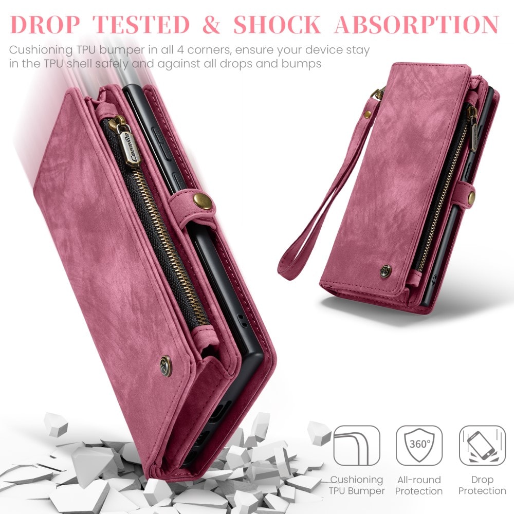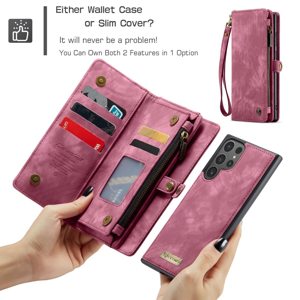 Mobilfodral med magnetskal och plånbok med extra många kortplatser till Samsung Galaxy S26 Ultra från CaseMe. Den rymliga plånboken har sedelficka, myntfack med dragkedja och ett flertal kortfack.