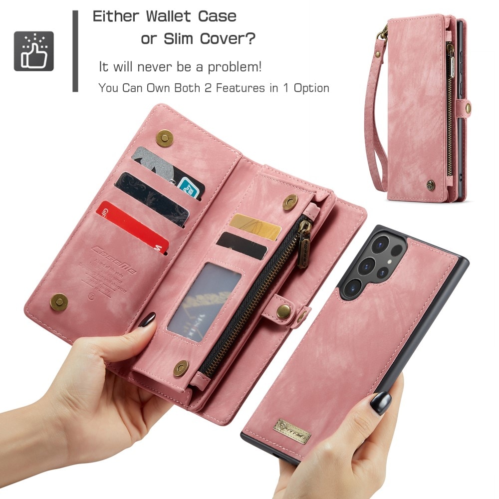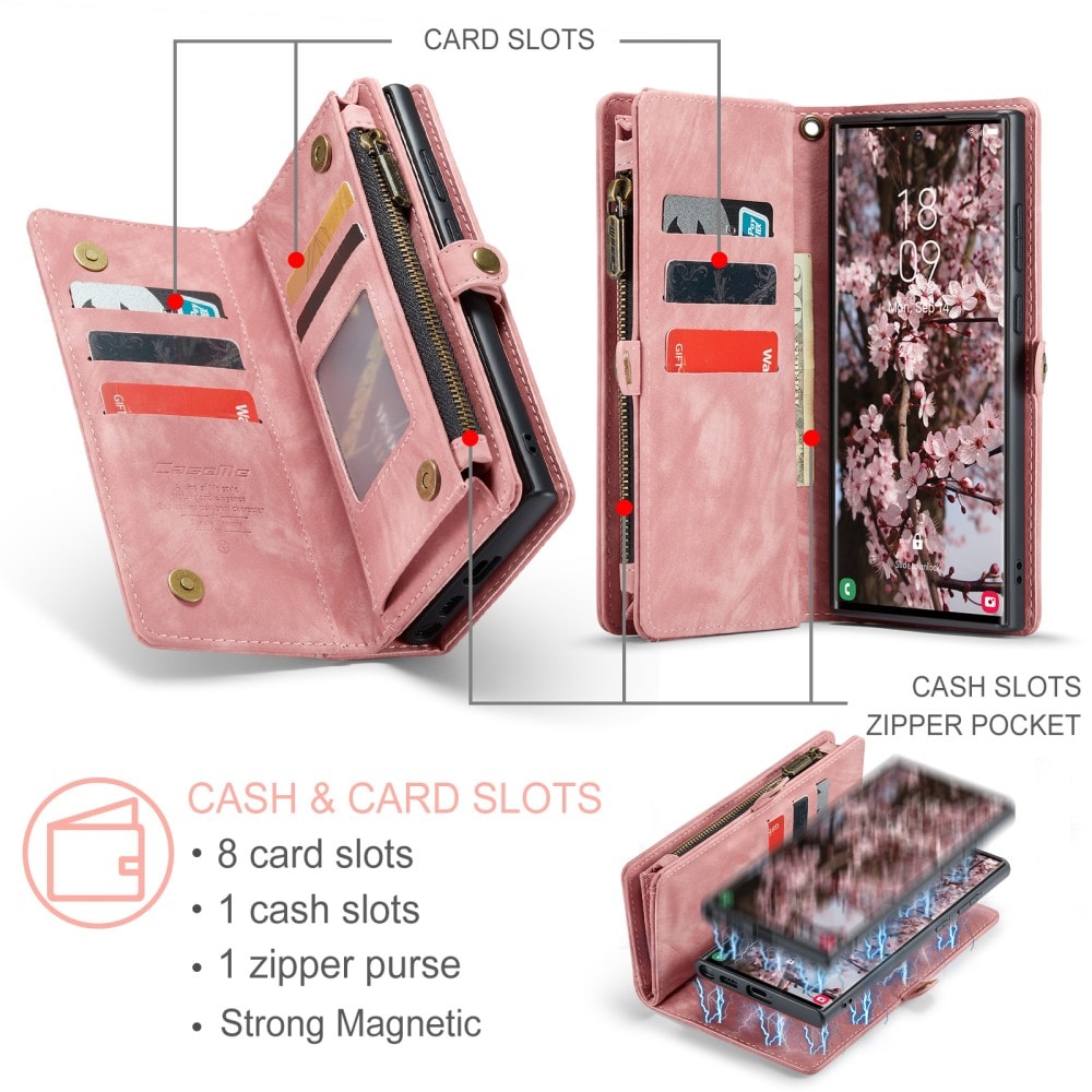 Mobilfodral med magnetskal och plånbok med extra många kortplatser till Samsung Galaxy S26 Ultra från CaseMe. Den rymliga plånboken har sedelficka, myntfack med dragkedja och ett flertal kortfack.
