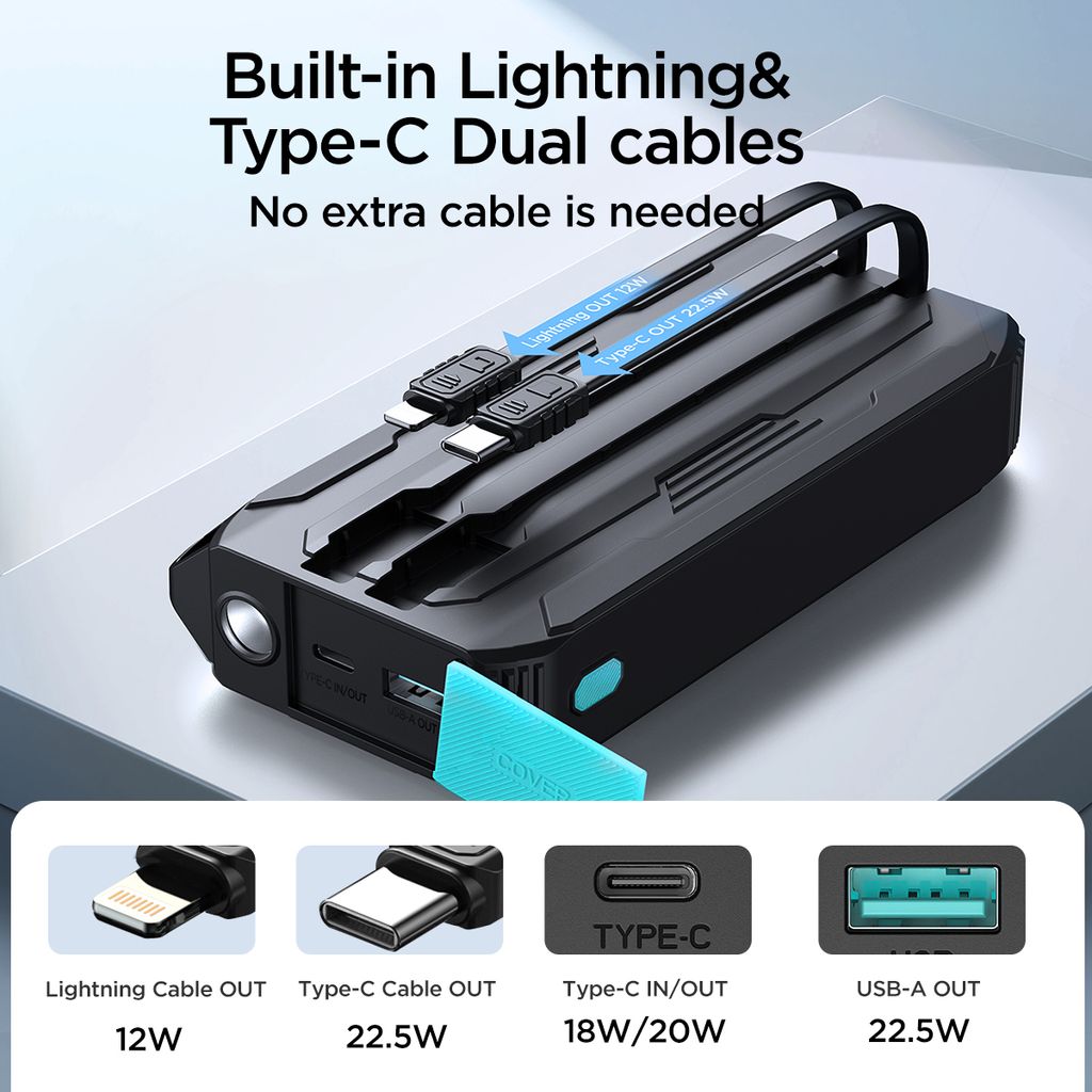 <p>Den höga kapaciteten ger flera laddningar, och med extra USB-A- och USB-C-portar kan du ladda flera enheter samtidigt. Den kompakta designen gör powerbanken enkel att ta med i fickan eller väskan, så du alltid har extra batteri när du behöver det.</p>