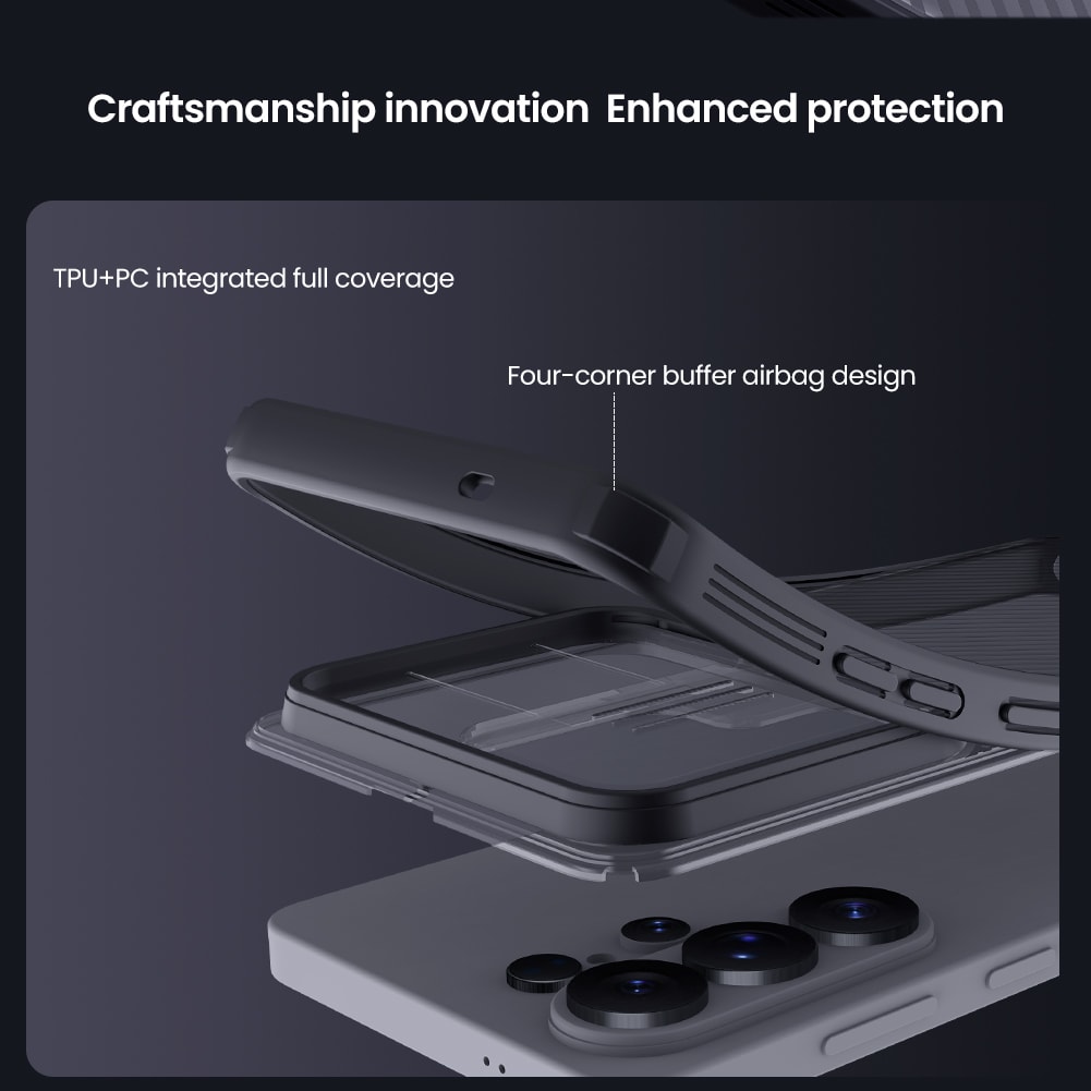 Skyddande skal med kameraskydd och snygg design till Samsung Galaxy S26 Ultra från Nillkin. För att skydda kameran mot repor och skador har skalet en lucka som enkelt skjuts framför kameran när du inte använder den.