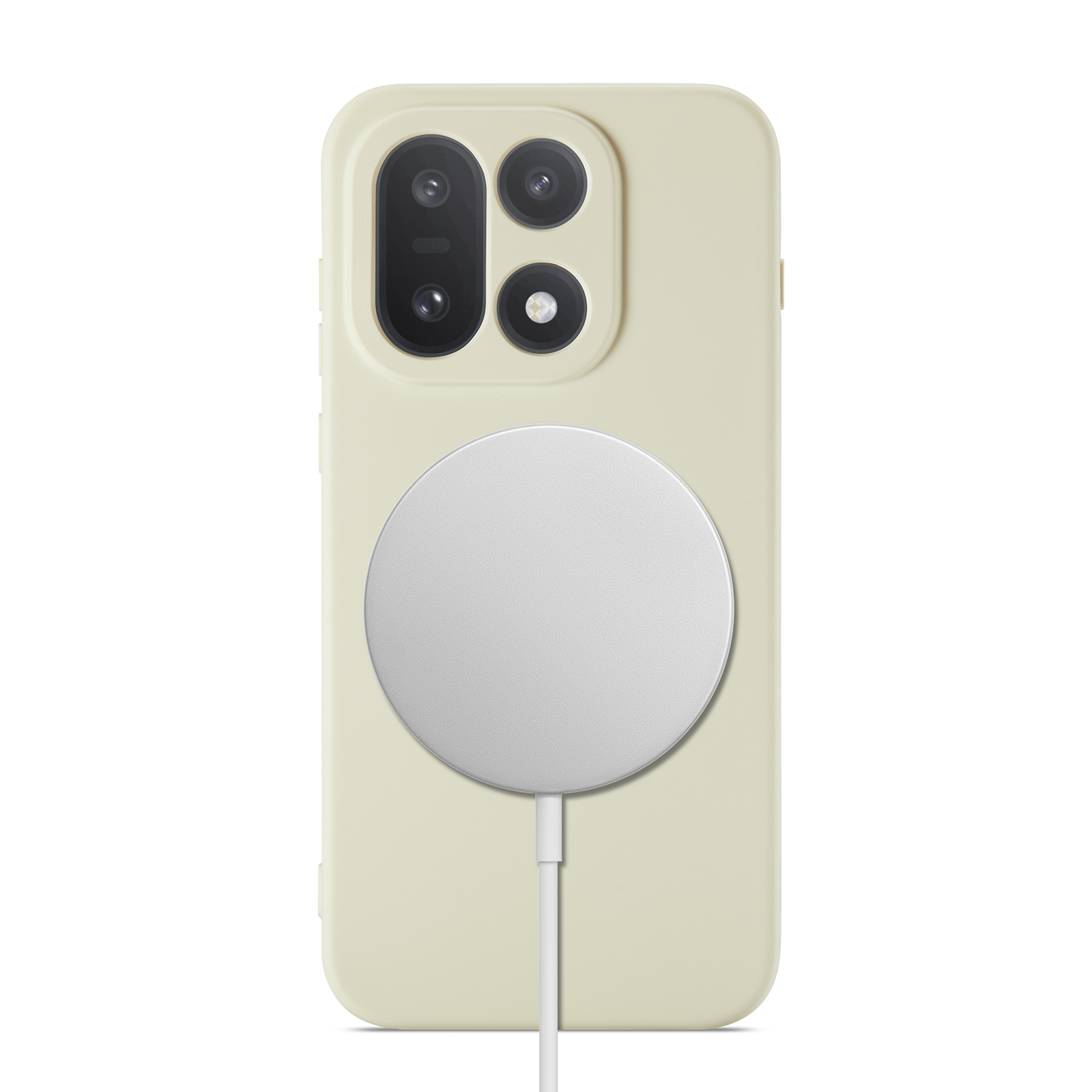 The case has a magnetic ring on the inside and is compatible with MagSafe accessories such as chargers and card holders.