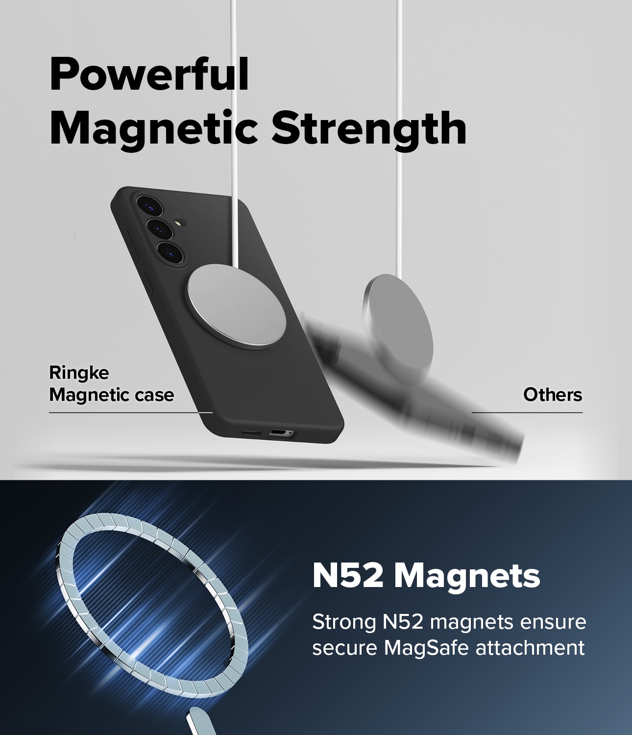 Stilrent silikonskal med MagSafe från Ringke till Samsung Galaxy S26 Plus. Skalet är stötdämpande för att skydda mot skador och MagSafe-stödet gör att du kan använda MagSafe-tillbehör och MagSafe-ladda med skalet på.
