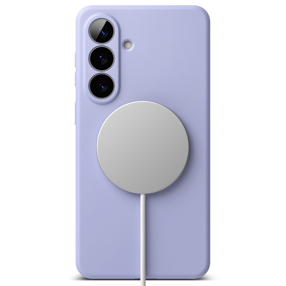 Stilrent silikonskal med MagSafe från Ringke till Samsung Galaxy S26 Plus. Skalet är stötdämpande för att skydda mot skador och MagSafe-stödet gör att du kan använda MagSafe-tillbehör och MagSafe-ladda med skalet på.