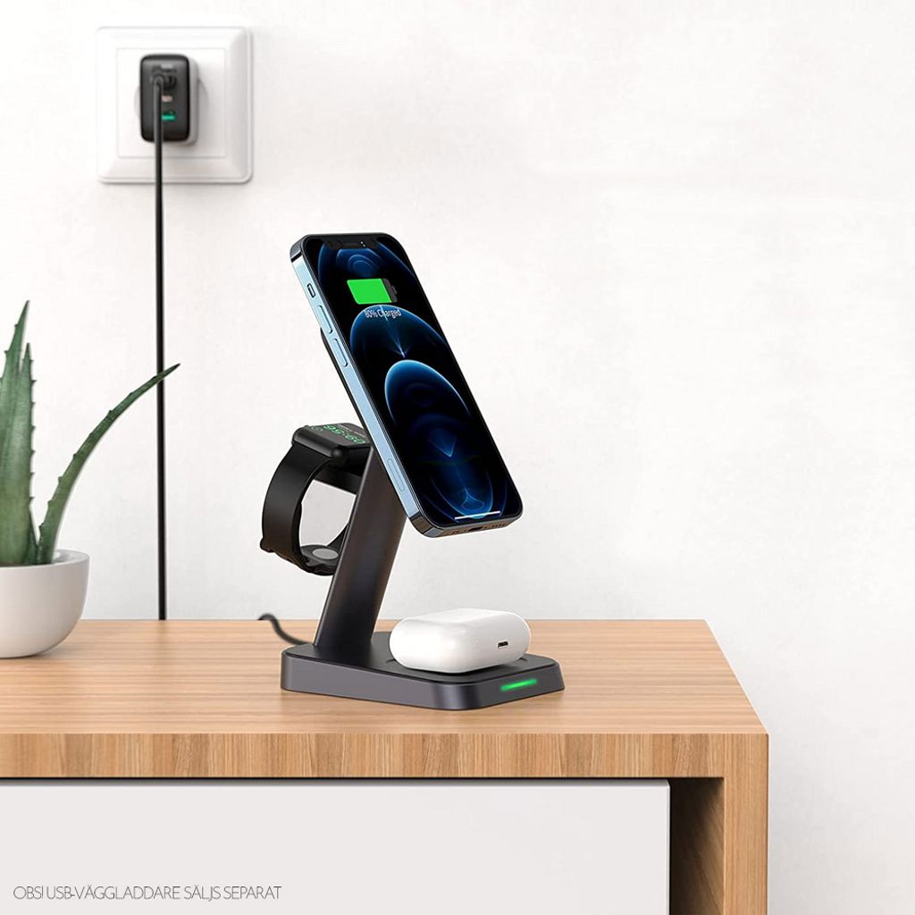 3-in-1 Trådlös MagSafe Laddningsstation 15W Svart