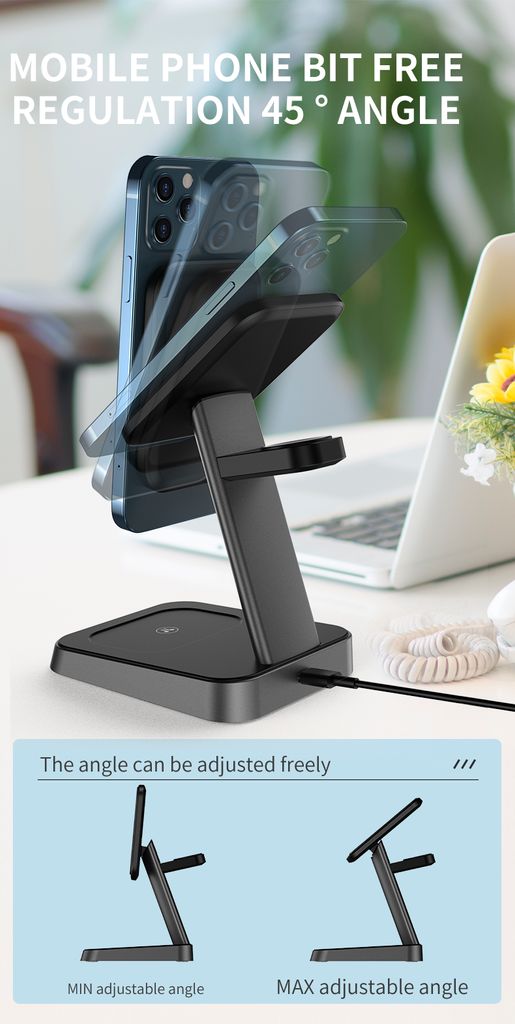 Laddningsstationen stöder trådlös snabbladdning upp till 15W för smartphones samt dedikerade laddningsytor för hörlurar och smartklockor. Den kan användas både vertikalt och horisontellt, vilket gör det enkelt att använda mobilen under laddning. Inb... Read more