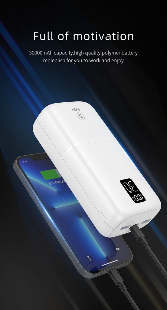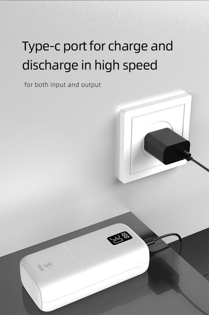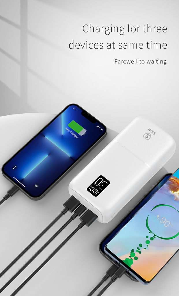 Med denna kraftfulla powerbank från SiGN kan du ladda upp till tre enheter samtidigt - en praktisk och pålitlig följeslagare för resor, arbete och vardagsbruk. Med en hög kapacitet på 30 000 mAh har du gott om batteri för att ladda din telefon flera gånger och hålla dina enheter igång hela dagen.