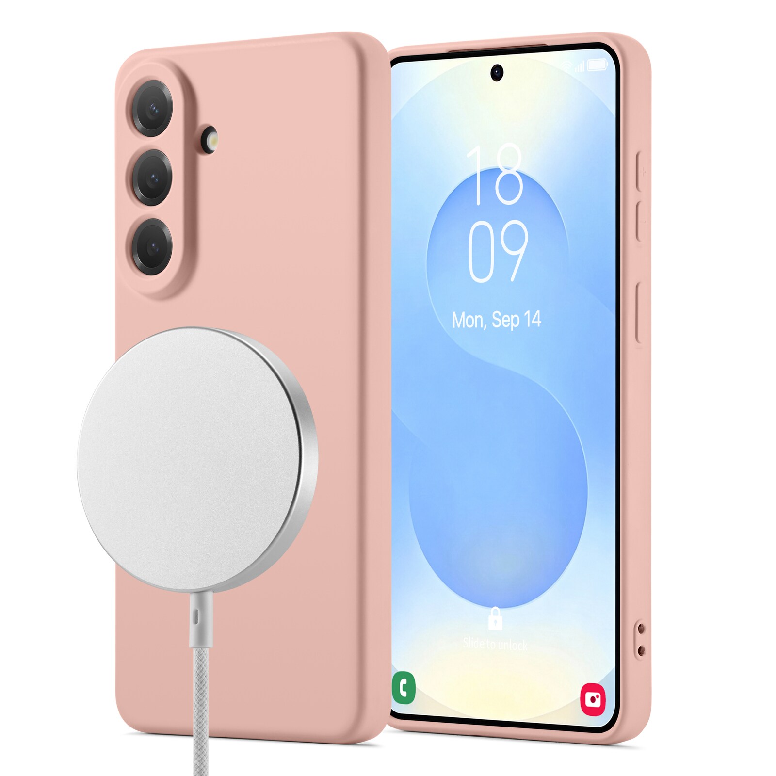 Skalet har en magnetisk ring på insidan och är kompatibelt med MagSafe-tillbehör som laddare och korthållare.