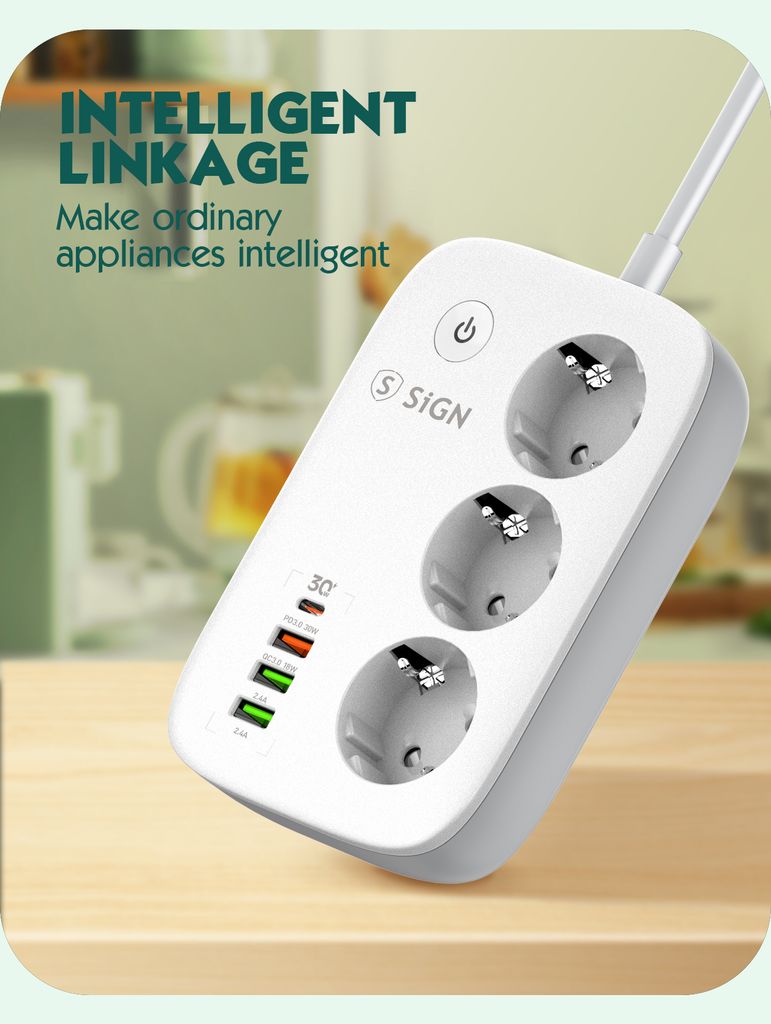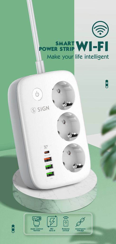 Smart WiFi-grenuttag från SiGN som ger dig full kontroll över din elektronik och förenklar vardagen med modern teknik. Med tre självständiga uttag och fyra USB-portar kan du ladda flera enheter samtidigt och styra varje anslutning individuellt via SiGN Smart Home-appen. Grenuttaget är utrustat med överladdningsskydd och tydliga LED-indikatorer som visar om strömmen är på eller av. Tack vare stöd för röststyrning via Amazon Alexa och Google Assistant kan du enkelt styra belysning, hushållsapparater och annan elektronik med din röst. Funktionen för schemaläggning gör det möjligt att automatis... Read more