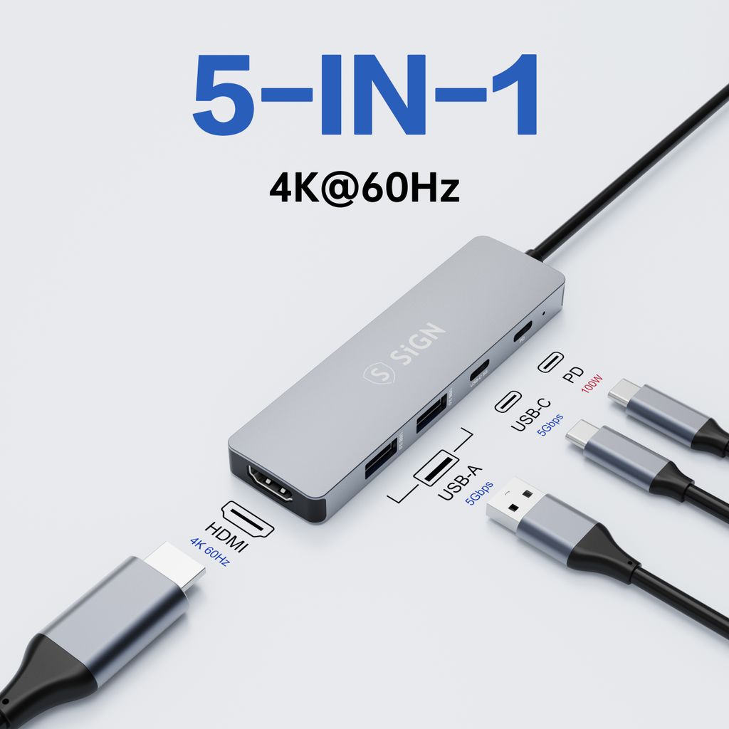 618815-i-1 Hub USB-C till 2x USB-A + HDMI + USB-C + PD Gråhttps://www.phonelife.eu/chargers-cables/image/adapters/5-i-1-hub-usb-c-till-2x-usb-a-hdmi-usb-c-pd-gra?channelCountry=IEhttps://www.phonelife.eu/pub_images/original/0_-_-_5_-_-_1_s_laqLQZgDIjb6nt82PwC.jpgInStock209EUR/chargers-cables/image/adaptersSiGN<p>SiGN 5-i-1 USB-C HUB är en praktisk och kraftfull adapter som ger din laptop eller surfplatta fler anslutningsmöjligheter. Med flera portar kan du enkelt ansluta tillbehör, skärmar och laddning via en enda USB-C anslutning. HUB:en är utrustad med HDMI-utgång som stöder upp till 4K 60Hz för skarp och tydlig bild, vilket gör den idealisk för arbete, presentationer och streaming. De två USB-A-portarna samt USB-C-porten möjliggör snabb dataöverföring upp till 5Gbps för anslutning av exempelvis externa lagringsenheter och andra tillbehör. Med stöd för upp till 100W Power Delivery kan du samtidigt ladda din enhet snabbt och effektivt. Den kompakta och lätta designen gör adaptern enkel att ta med i väskan och perfekt för både kontor, hem och resor.</p>