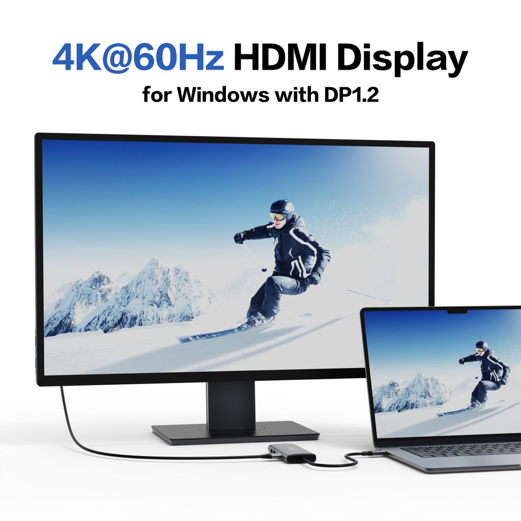 - Portar: 2 × USB-A 3.0, 1 × HDMI, 1 × USB-C, 1 × USB-C PD, 1 × RJ45 Ethernet<br />