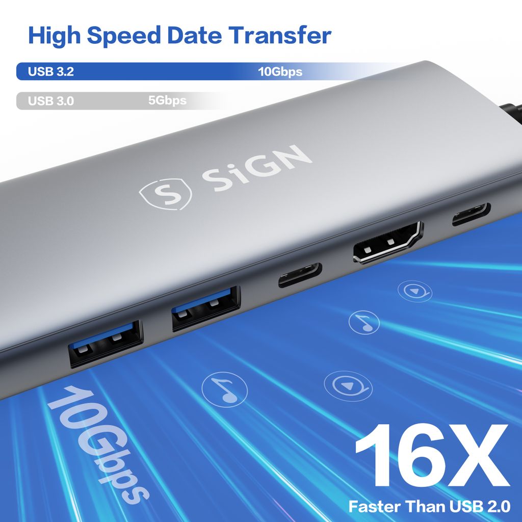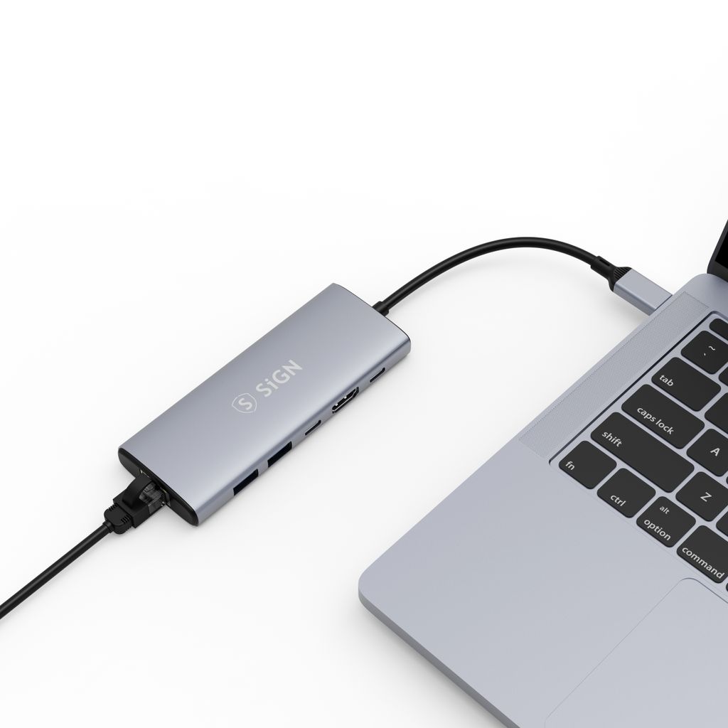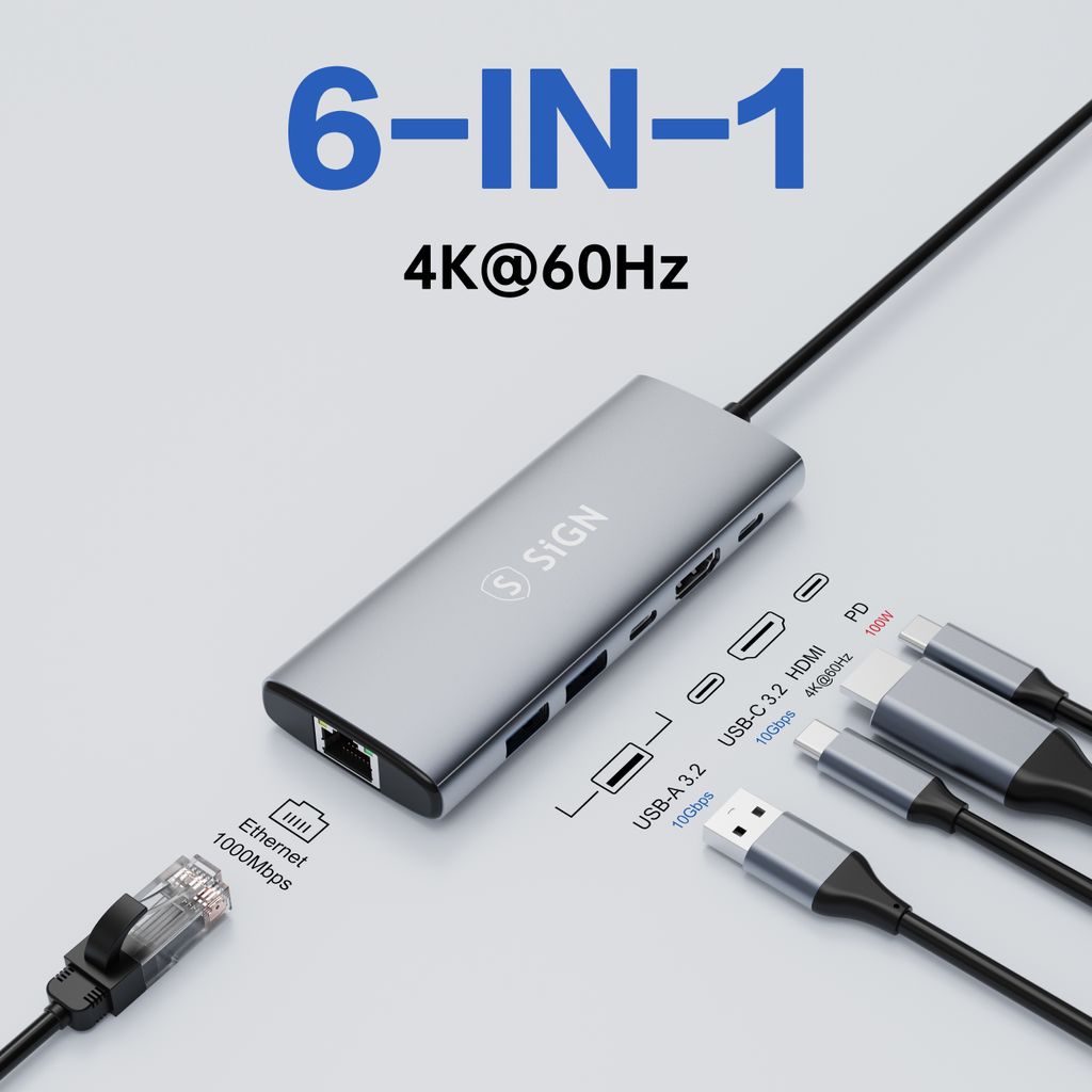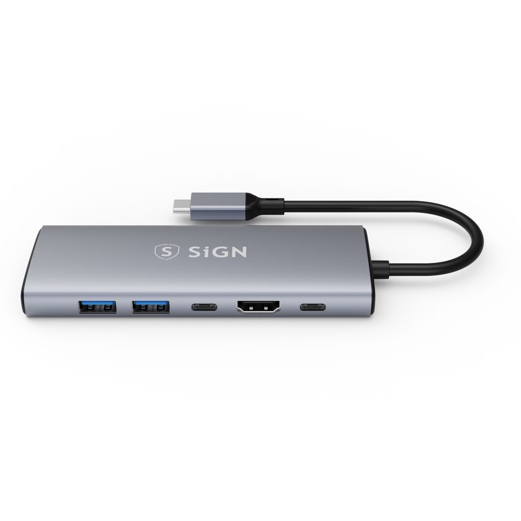 618826-i-1 Hub USB-C till 2x USB-A + Ethernet + HDMI + USB-C + PD Gråhttps://www.phonelife.eu/chargers-cables/image/adapters/6-i-1-hub-usb-c-till-2x-usb-a-ethernet-hdmi-usb-c-pd-gra?channelCountry=IEhttps://www.phonelife.eu/pub_images/original/0_-_-_5_-_-_2_AeMovlDpo50RaS_Jd7ypO.jpgInStock279EUR/chargers-cables/image/adaptersSiGN<p>SiGN 6-i-1 USB-C HUB är en kraftfull och mångsidig adapter som gör det enkelt att utöka anslutningsmöjligheterna på din laptop eller surfplatta. Med flera portar kan du ansluta skärmar, nätverk, tillbehör och laddning via en enda USB-C anslutning. HUB:en är utrustad med HDMI-utgång som stöder upp till 4K 60Hz för skarp och tydlig bild på externa skärmar, vilket gör den idealisk för arbete, presentationer och streaming. Den inbyggda RJ45 Ethernet-porten ger en stabil och snabb gigabit nätverksanslutning för pålitlig internetuppkoppling. De två USB-A 3.0-portarna samt USB-C-porten möjliggör snabb dataöverföring upp till 10Gbps för anslutning av externa lagringsenheter och andra tillbehör. Med upp till 100W Power Delivery kan du samtidigt ladda din laptop effektivt. Den kompakta designen gör adaptern perfekt för både kontor, hem och resor.</p>