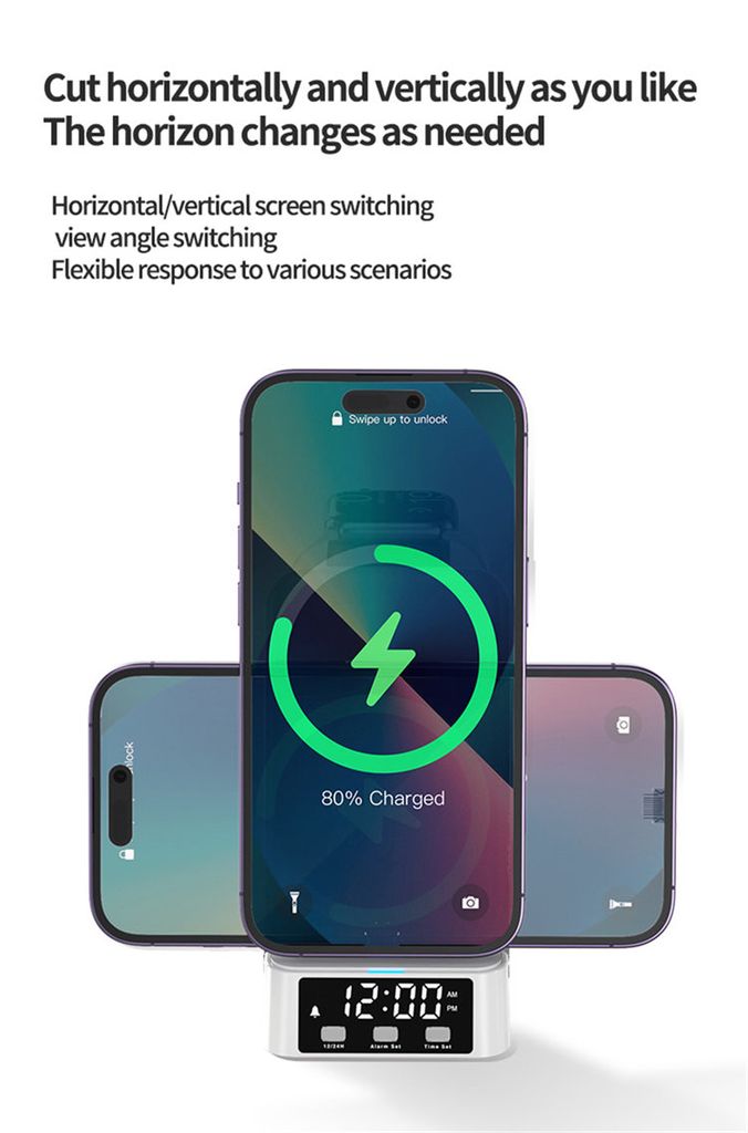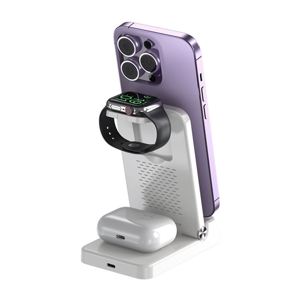 Laddningsstället stöder trådlös snabbladdning upp till 15W för smartphones och har dedikerade laddningsytor för Apple Watch och hörlurar. Du kan placera mobilen både vertikalt och horisontellt under laddning, vilket gör det e... Read more