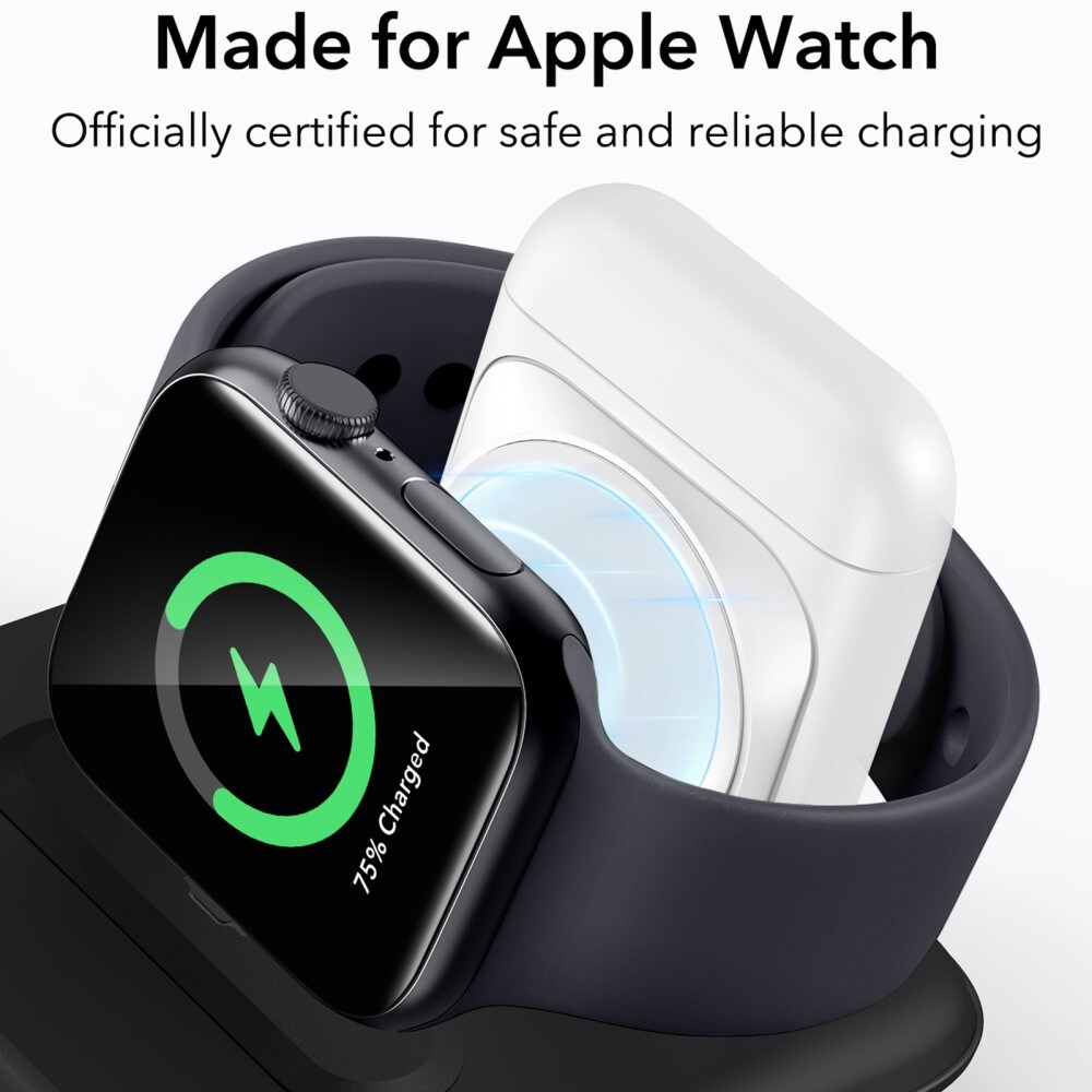 <p>Includes: 3-in-1 wireless charger, Portable Apple Watch charger, USB-C to USB-C cable, Wall charger, Travel bag</p>