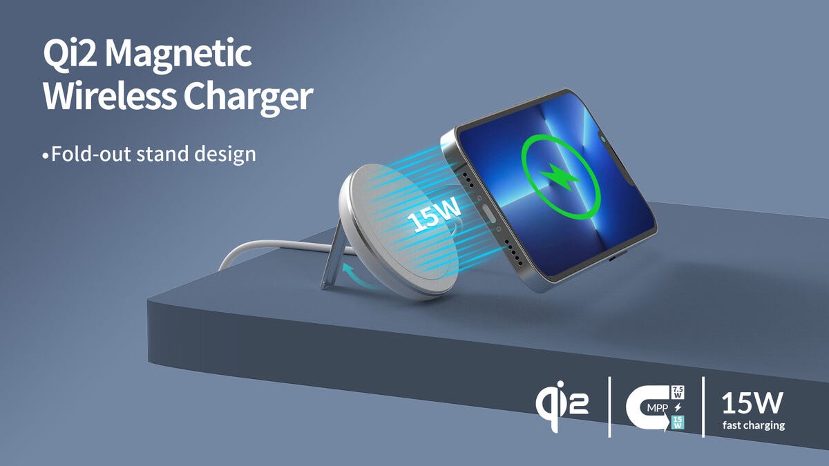 Trådlös magnetisk Qi2 laddare med stativ som ger smidig och effektiv laddning av kompatibla smartphones och hörlurar. Med stöd för Qi2-teknologi kan enheter laddas snabbt och stabilt med upp till 15 W effekt. Den magnetiska konstruktionen håller telefonen säkert på plats och gör det enkelt att använda den i video- eller samtalsläge under laddning. Laddaren passar både iPhone och Android-enheter med Qi eller Qi2-stöd och kan även användas för att ladda trådlösa TWS-hörlurar. Den kompakta designen gör laddaren praktisk att använda på skrivbordet, nattduksbordet eller arbetsplatsen.