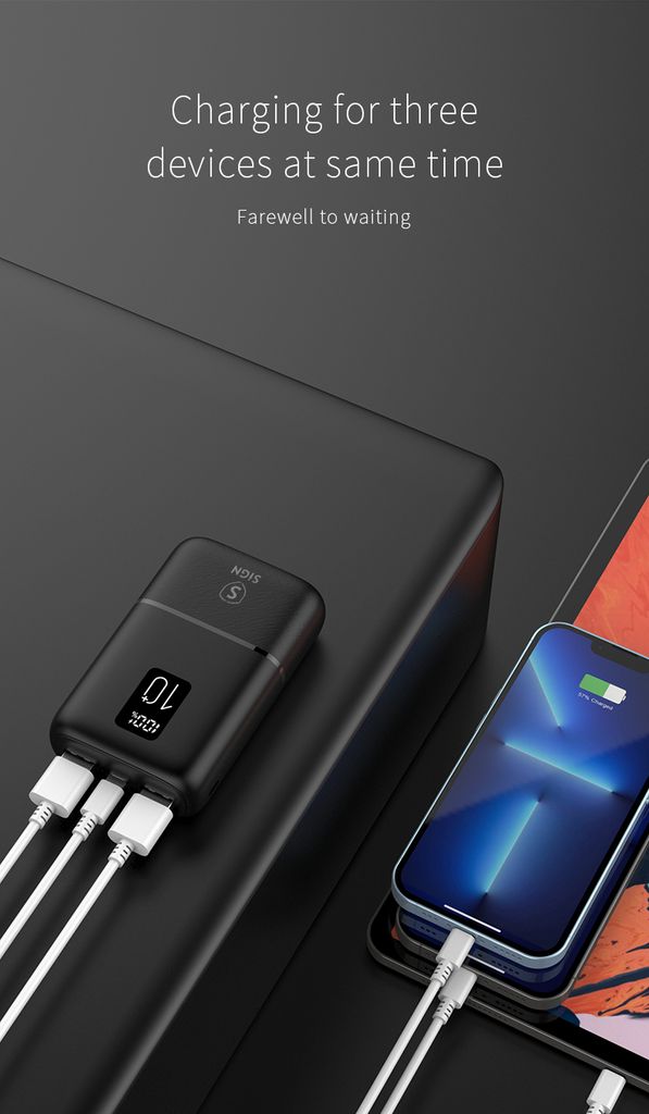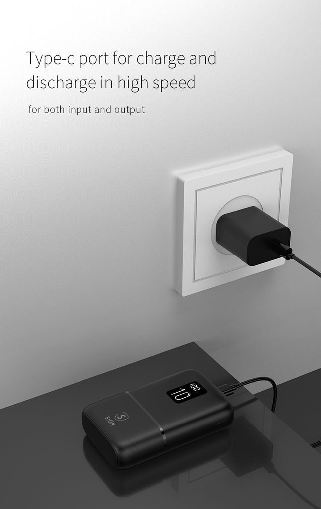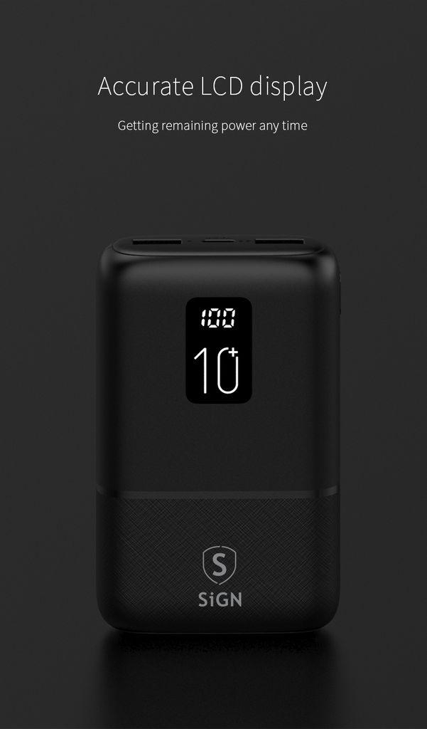 SiGN Mini Q.C Powerbank med 10000mAh kapacitet är en kompakt och praktisk laddningslösning för smartphones, surfplattor och andra USB-kompatibla enheter. Den höga batterikapaciteten gör det möjligt att ladda dina enheter flera gånger, samtidigt som den lilla storleken gör powerbanken enkel att ta med i fickan, väskan eller under resor. Den är kompatibel med enheter från tillverkare som Apple, Samsung, Huawei och andra USB-laddade enheter.