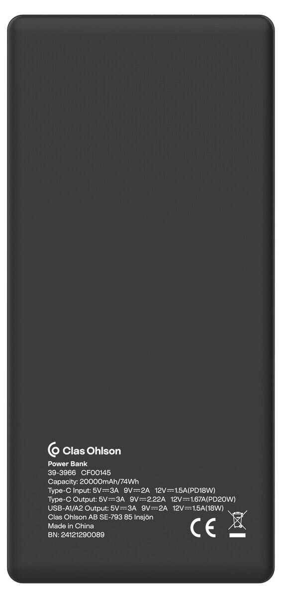 - Utgång USB-C: 5 V / 3 A, 9 V / 2,22 A, 12 V / 1,67 A<br />