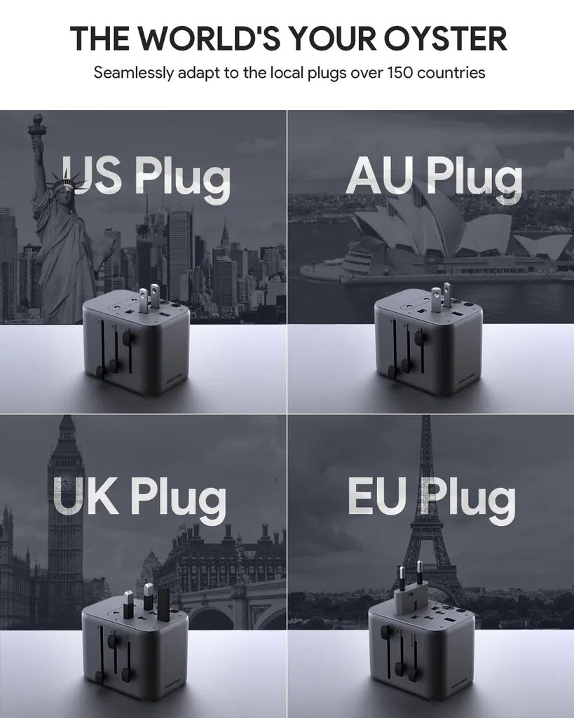 <p>Reseadaptern har två USB-A-portar och två USB-C-portar, vilket gör att du kan ladda upp till fyra enheter samtidigt. USB-C-porten stöder Power Delivery upp till 20W för snabb och effektiv laddning av mobiltelefoner, surfplattor och andra kompatibla enheter. Inbyggda säkerhetsfunktioner skyddar mot överspänning, överladdning, överström och överhettning för trygg användning.</p>