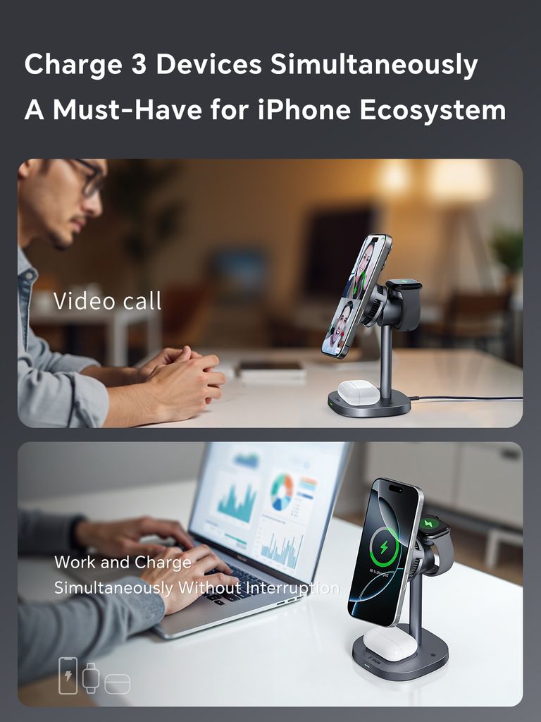 <p>- 3-i-1 magnetisk trådlös laddningsstation<br />