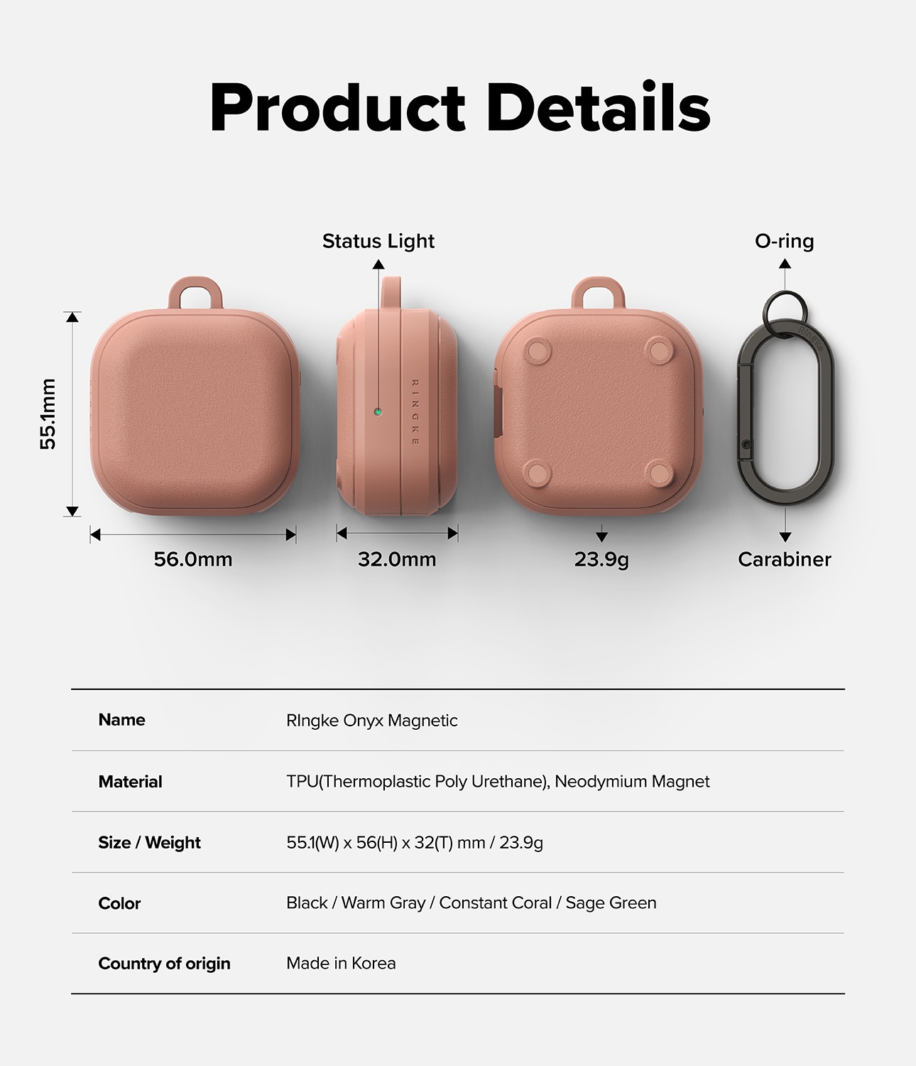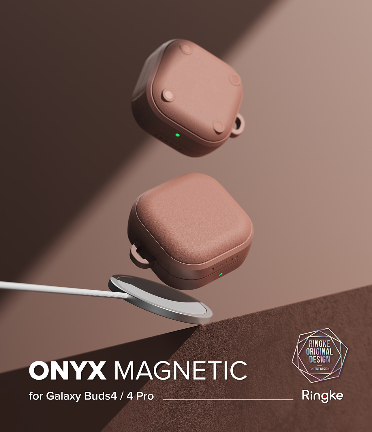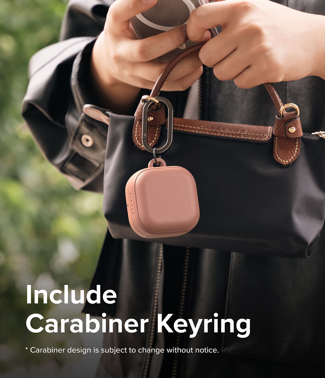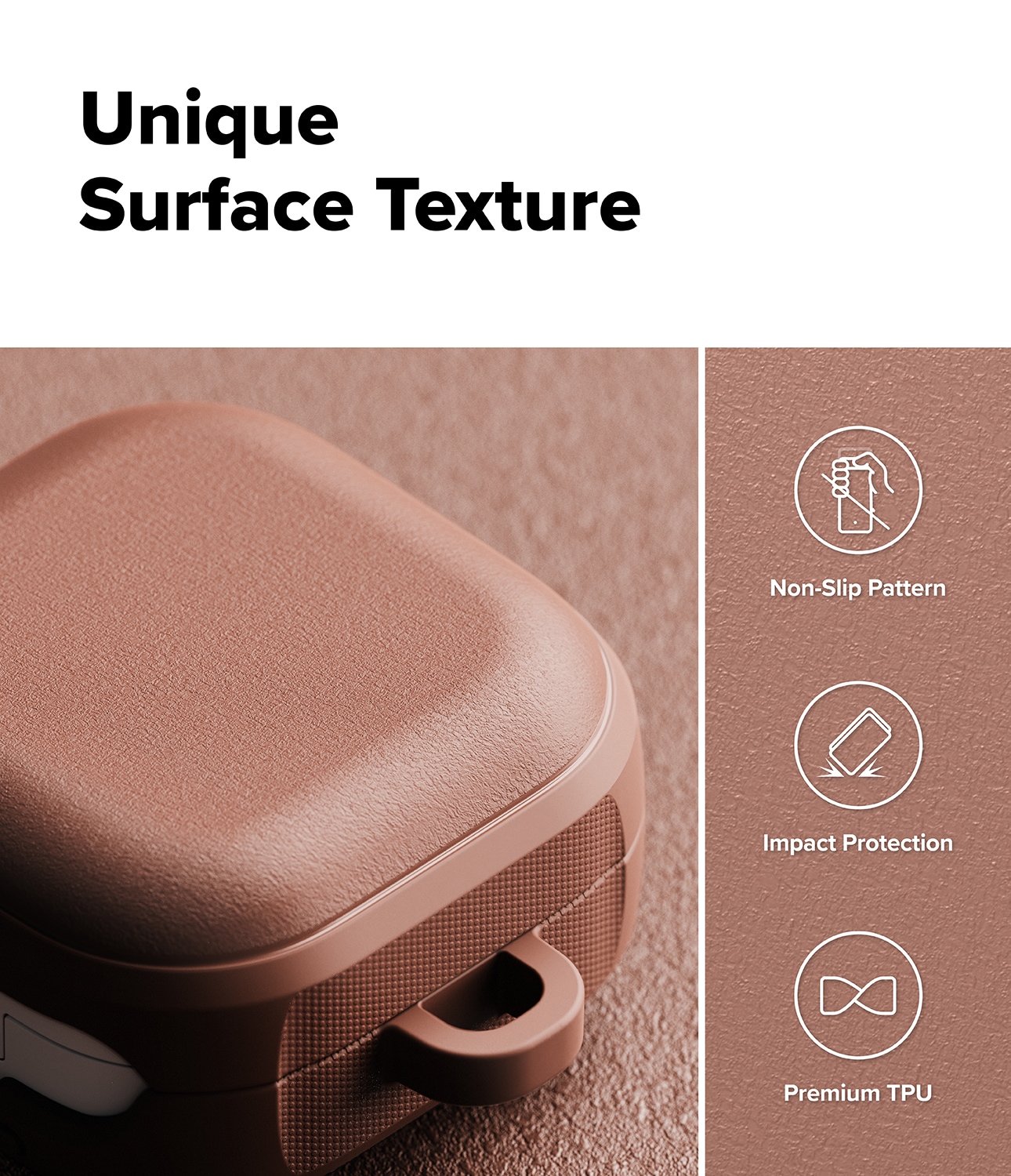 Tufft skal med MagSafe och karbinhake för Samsung Galaxy Buds 4 från Ringke. Skalet har en snygg design och ger ett bra stötskydd. Det är tillverkat av flexibel och slitstark TPU med en unik matt, granulär textur som både känns skön att hålla i och motverkar halkrisk och fingeravtryck.