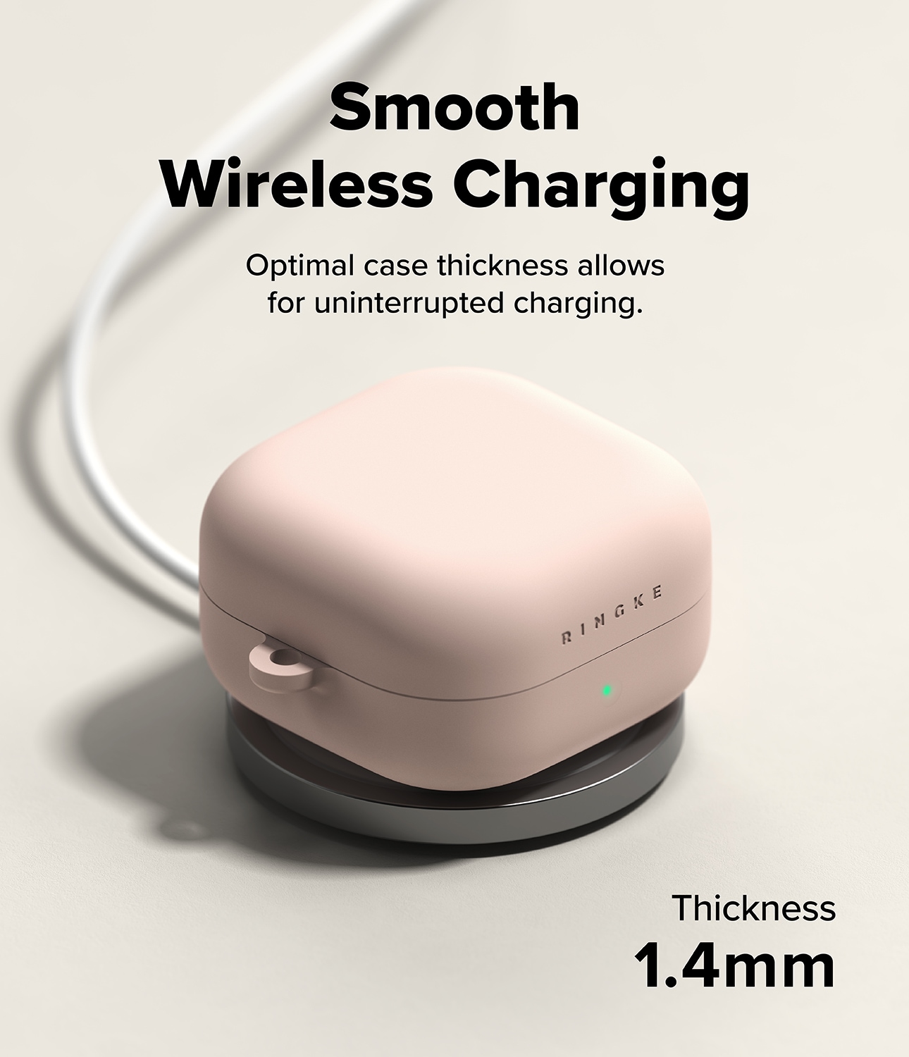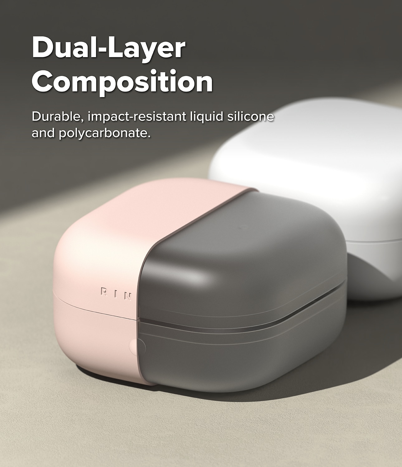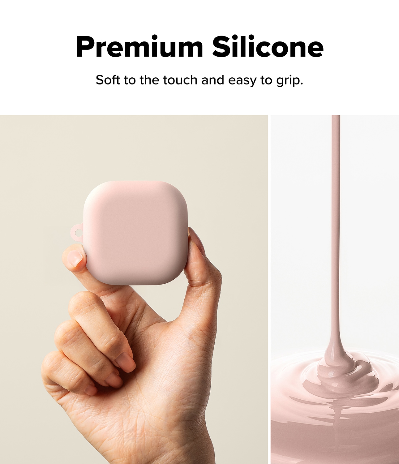 Stilrent silikonskal med karbinhake till Samsung Galaxy Buds 4 Pro från Ringke. Skalet har en tunn design men är fortfarande stötdämpande för att skydda mot skador. Det är tillverkat av högkvalitativt flytande silikon med en yta som både känns lyxig och ger bra skydd. Skalet har en tvålagersdesign med en stark polykarbonatram på insidan och silikon på utsidan.