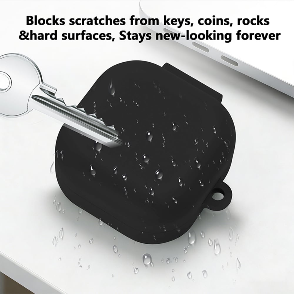 Skyddande skal i silikon till Samsung Galaxy Buds 4 Pro. Skalet är tillverkat i stötdämpande silikon som minskar skaderisken vid fall och stötar i vardagen. Silikonet gör även att etuiet inte blir halt vilket ger ett bra grepp och gör att det ligger kvar i fickan eller på bordet. Fäst dina hörlurar på valfritt ställe med den medföljande karbinhaken.
