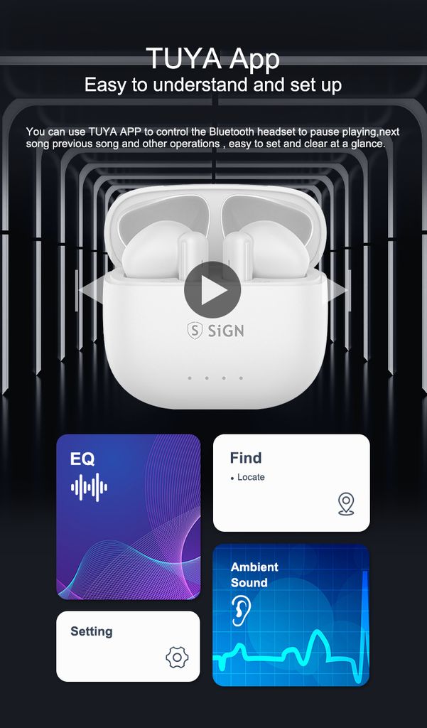 <p>- Trådlösa hörlurar för Android och iOS, iPhone, Samsung och Huawei<br />