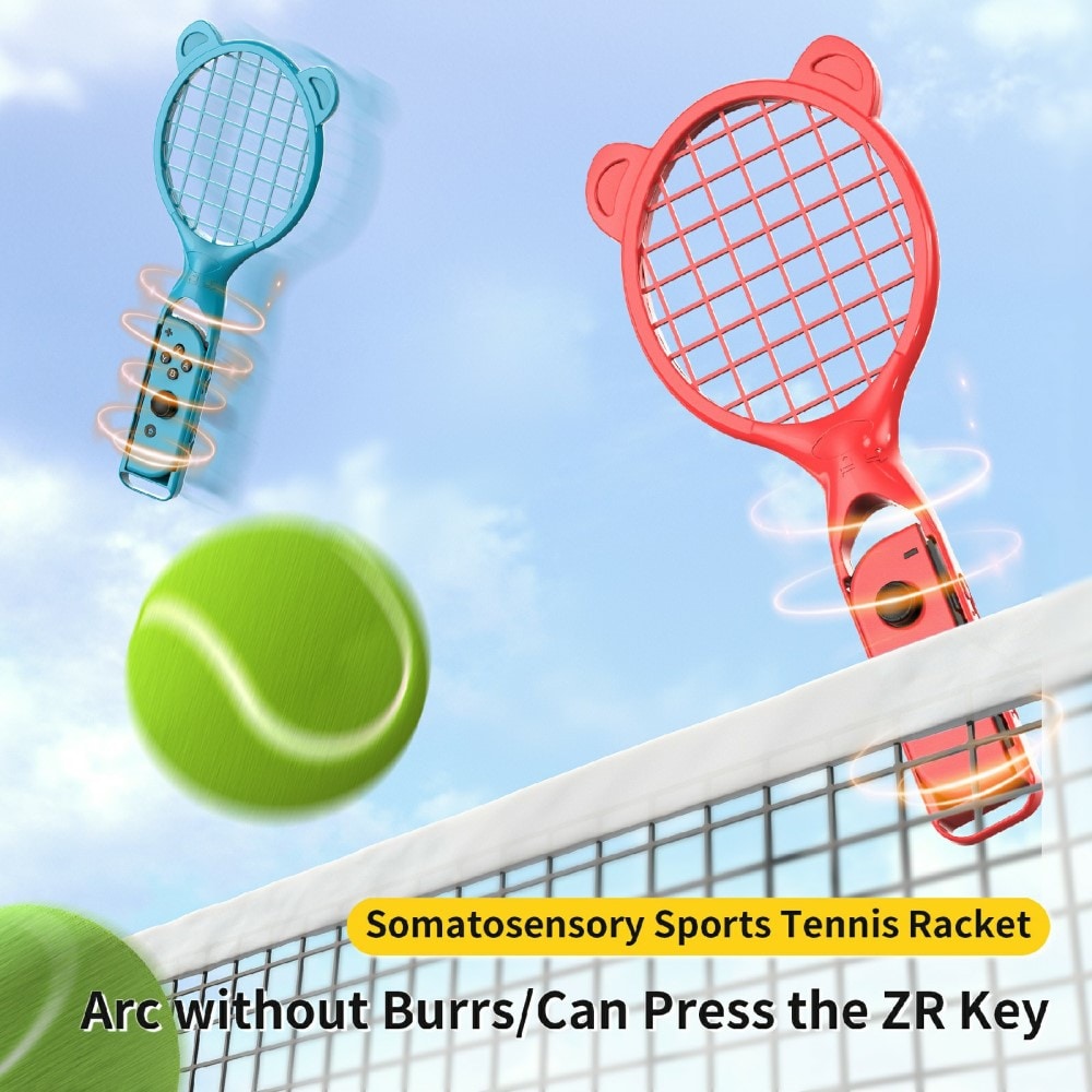 Upgrade your gaming experience with these tennis rackets with wrist straps for Nintendo Switch controllers. The holders are designed to fit Joy-Con and provide a realistic feel when playing tennis and badminton games. Made from durable materials, they are built to withstand many intense gaming sessions.
