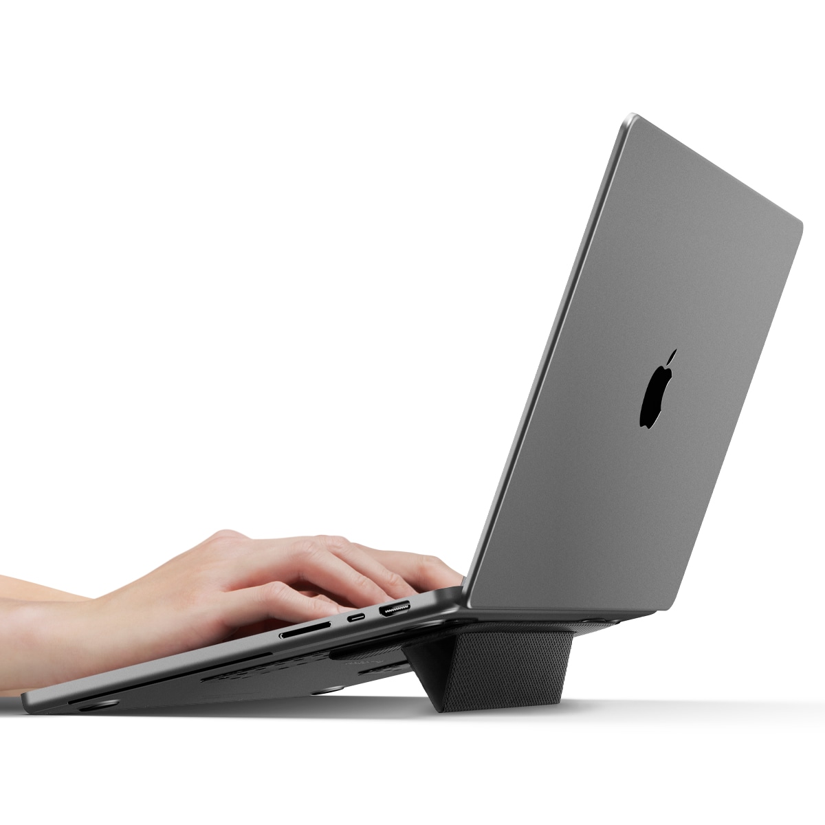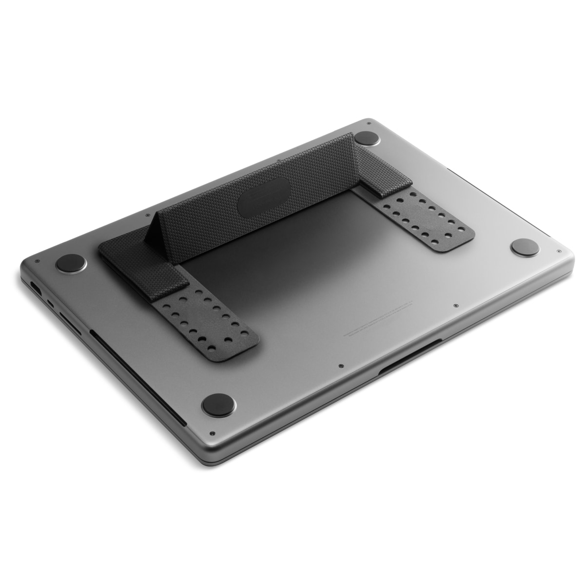 StÀllet fÀsts med en stark, ÄteranvÀndbar sjÀlvhÀftande yta som sitter stabilt utan att lÀmna mÀrken. Med tvÄ justerbara vinklar kan du förbÀttra skrivstÀllningen och hÄllningen, samtidigt som luftflödet under datorn ökar. Den strukturerade PU-ytan ser till att datorn stÄr stadigt.