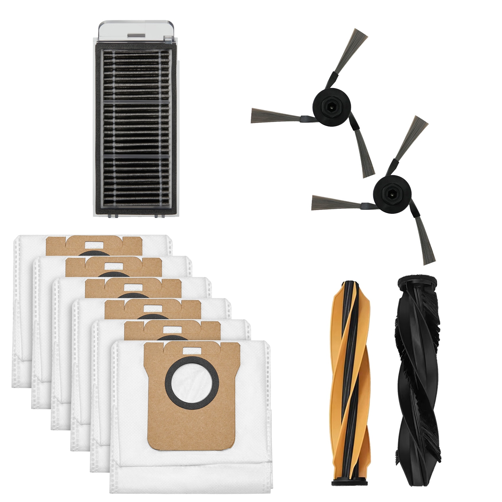 Tillbehörskit med dammsugarpåsar, filter, sidoborstar och huvudborste tilll  Dreame Aqua 10 Ultra Roller. Detta kittet innehåller alla nödvändiga tillbehör för att optimera din robotdammsugares funktion och förlänga dess livslängd. Med dessa extra tillbehör får du ut det mesta av din dammsugare och kan säkerställa att den fungerar på bästa sätt vid varje användning.