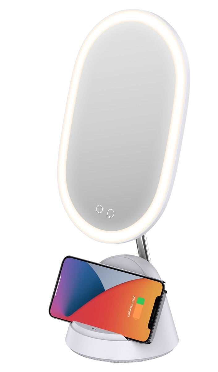 62220Sminkspegel med belysning och trådlös Qi-laddare Vithttps://www.phonelife.eu/laptop-more-accessories/sminkspegel-med-belysning-och-tradlos-qi-laddare-vit?channelCountry=IEhttps://www.phonelife.eu/pub_images/original/68736250150942.jpgInStock599EUR/laptop-more-accessoriesClas Ohlson<p>Sminkspegel med LED-belysning och inbyggd trådlös Qi-laddning som kombinerar praktisk funktion med stilren design. Justerbar belysning i tre nivåer och valbar färgtemperatur gör det enkelt att skapa rätt ljus för både vardag och fest. Spegeln kan vinklas upp till 40 grader för optimal användning och levereras med en magnetisk 3x förstorningsspegel som gör det lättare att applicera makeup med precision. Den integrerade laddningsytan möjliggör smidig trådlös laddning av kompatibla iPhone- och Android-enheter, vilket gör spegeln till ett funktionellt tillskott på sminkbordet eller i badrummet.</p>