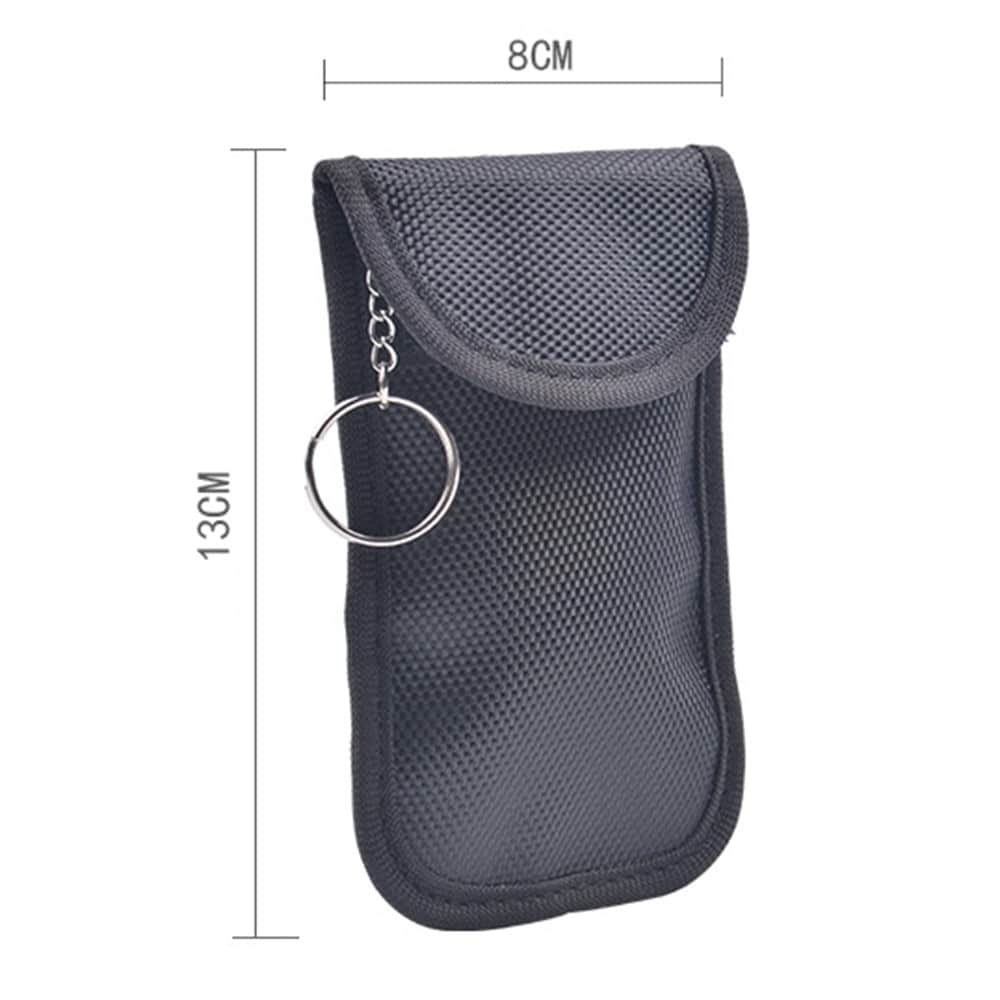 Protect your car keys with this RFID-protected car key case. The case prevents thieves from intercepting and relaying signals from your keyless go car key, allowing you to feel confident that your keys are securely stored. In addition to the key protection function, the case also features a compartment for cards or bills, ensuring they are also kept safe. The case closes with a Velcro strap and can be attached to any desired location with the included keyring.