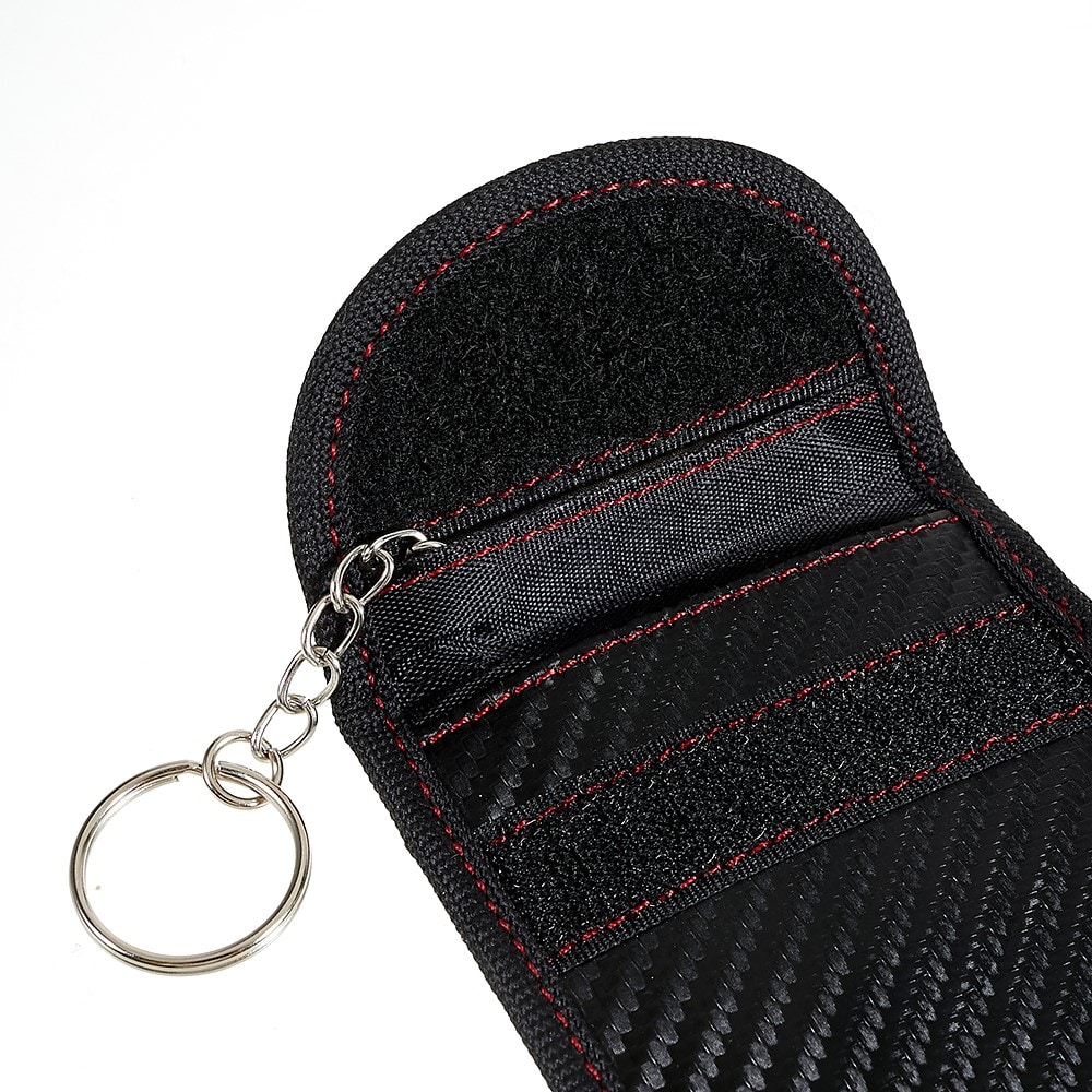 Protect your car keys with this RFID-protected car key case. The case prevents thieves from intercepting and relaying signals from your keyless go car key, allowing you to feel confident that your keys are securely stored. In addition to the key protection function, the case also features a compartment for cards or bills, ensuring they are also kept safe. The case closes with a Velcro strap and can be attached to any desired location with the included keyring.