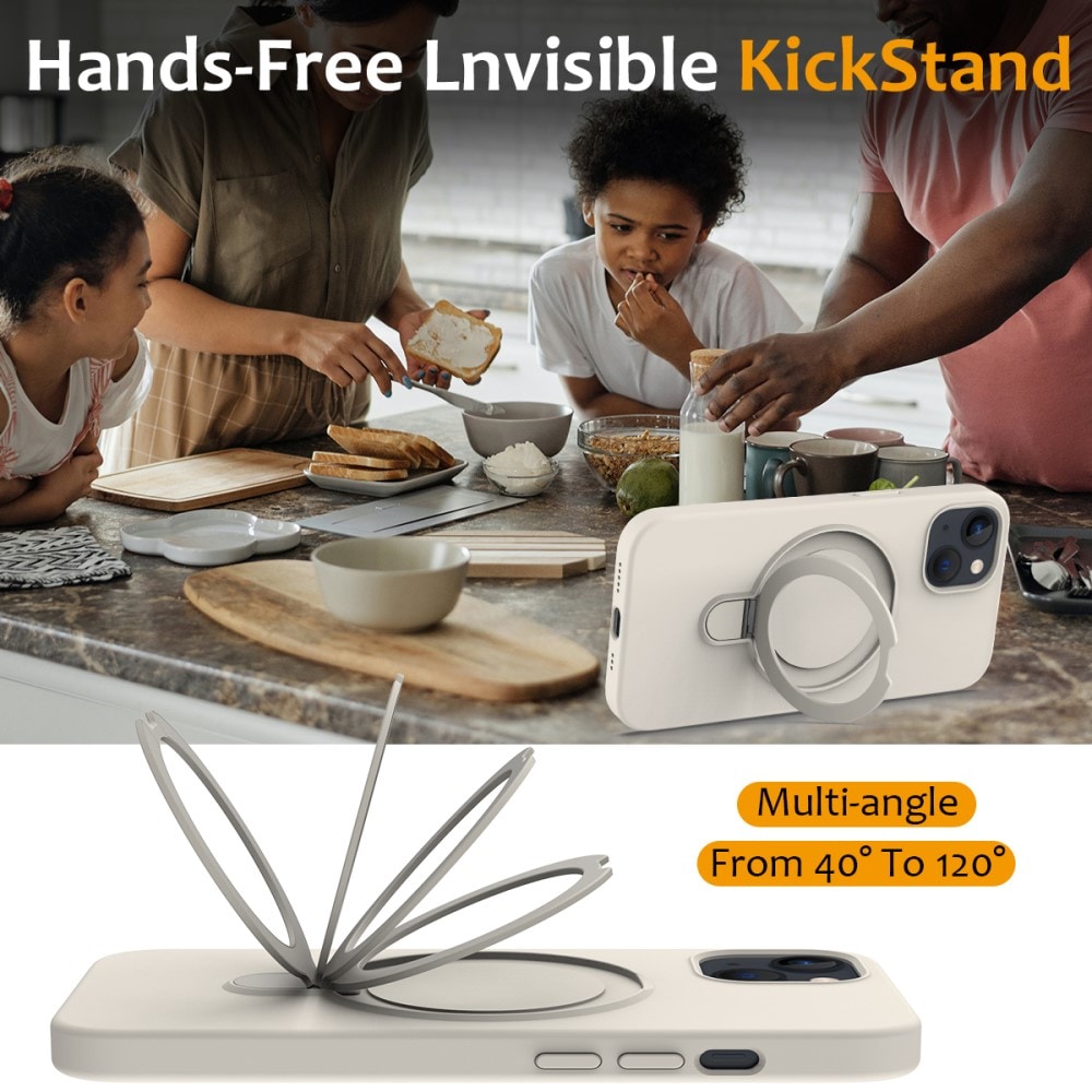 The magnetic ring on the back can be used with MagSafe-compatible accessories such as chargers and card holders. The ring can also serve as a stand for watching movies, clips, or for gaming.