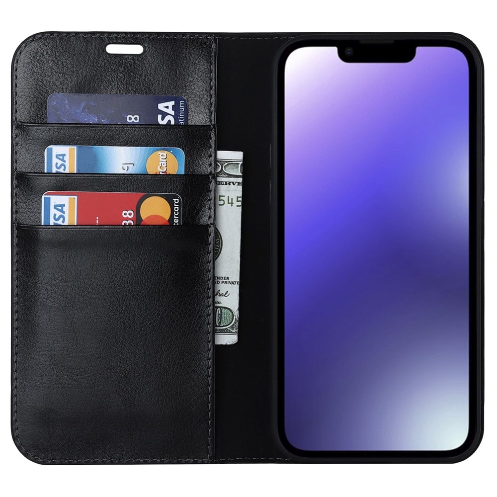 Protect your Apple iPhone 14 with a sleek case made from genuine leather. Despite its slim and stylish design, the case features 3 card slots and 1 cash pocket on the inside of the cover. Your phone is securely held in place with a flexible inner shell.
