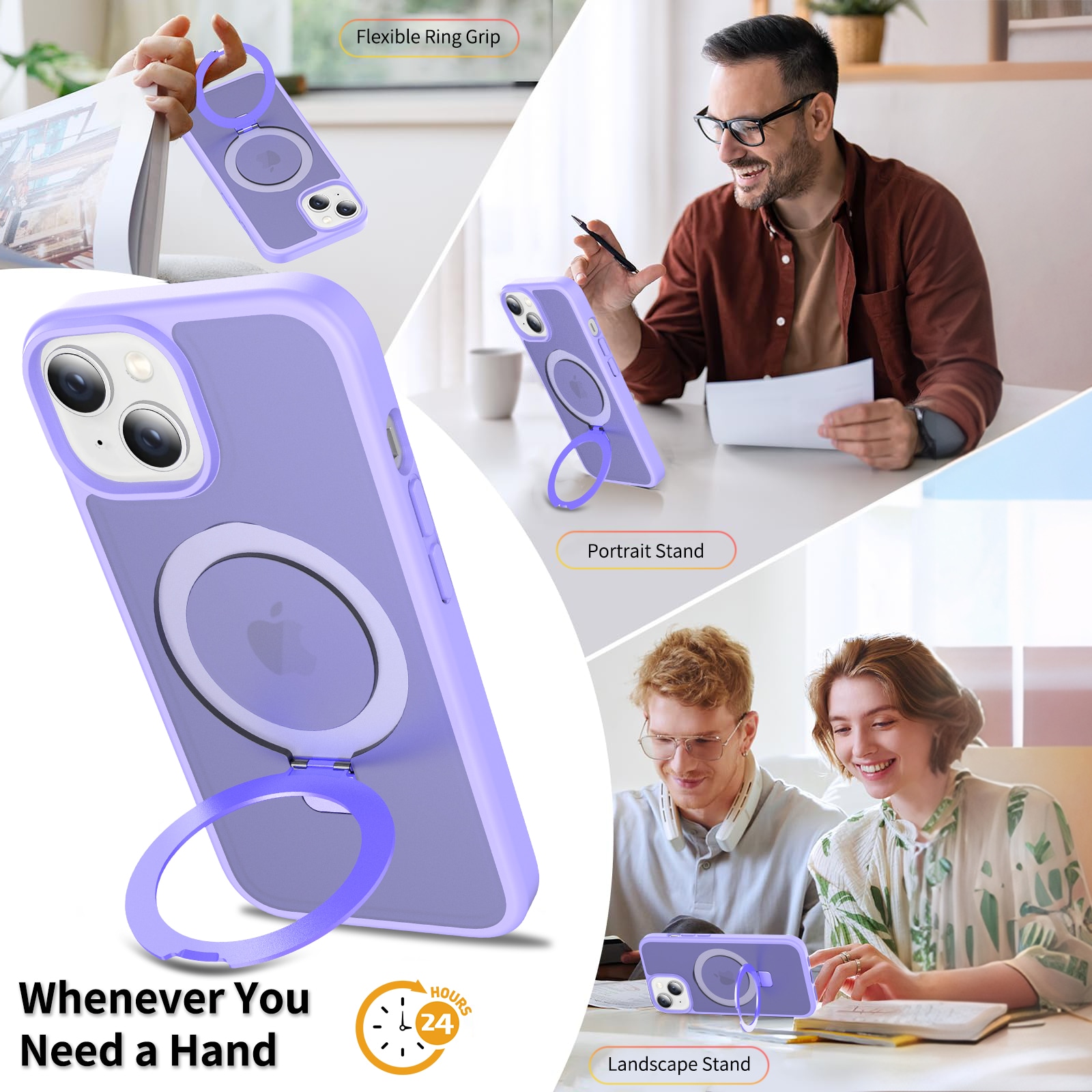 - Utfällbar MagSafe-ring som kan användas som mobilställ