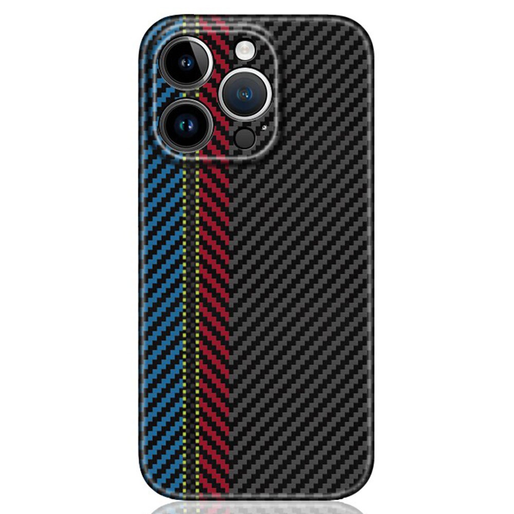 Thin and stylish mobile case made of aramid fiber for iPhone 15 Pro Max. Despite its slim design, this case provides effective protection against shocks and falls, thanks to the strong Aramid material. The textured and grip-friendly surface prevents the phone from slipping out of your hand. The case's slim and light design maintains the phone's agility and makes it easy to handle.