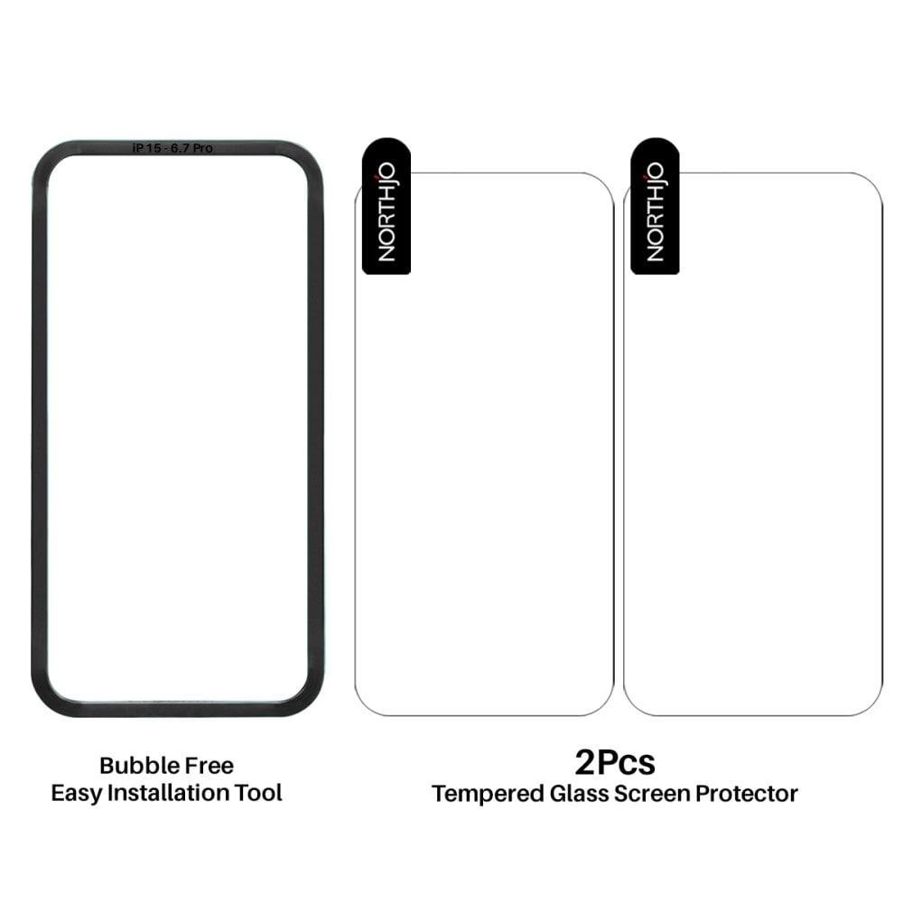 2-pack of tempered glass screen protectors for Apple iPhone 16 Plus from Northjo. The screen protector is made of high-clarity tempered glass and is only 0.3 mm thin. It effectively protects your phone screen from damage, scratches, and cracks.
