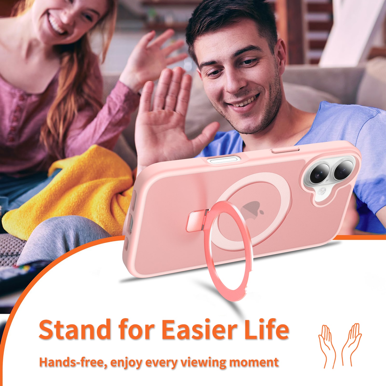 - Utfällbar MagSafe-ring som kan användas som mobilställ