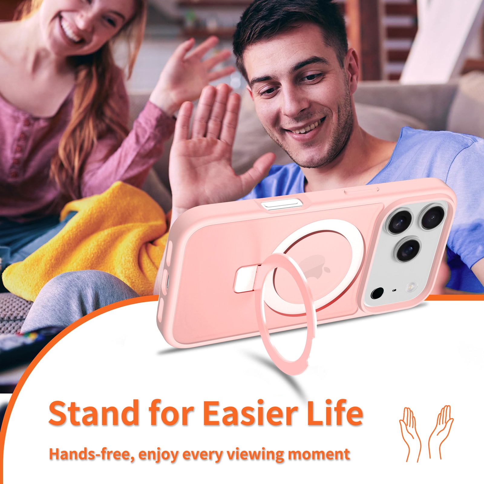 Mobilskal med utfällbar magnetisk ring till Apple iPhone 17 Pro. För bästa skydd mot stötar och fall är skalet tvådelat med en TPU-kärna och ett hölje i hårdplast. Ringen på baksidan är magnetisk och kan användas tllsammans med MagSafe-kompatibla tillbehör såsom laddare och korthållare. Ringen kan även bilda ett ställ för att se på film, klipp eller för att spela.