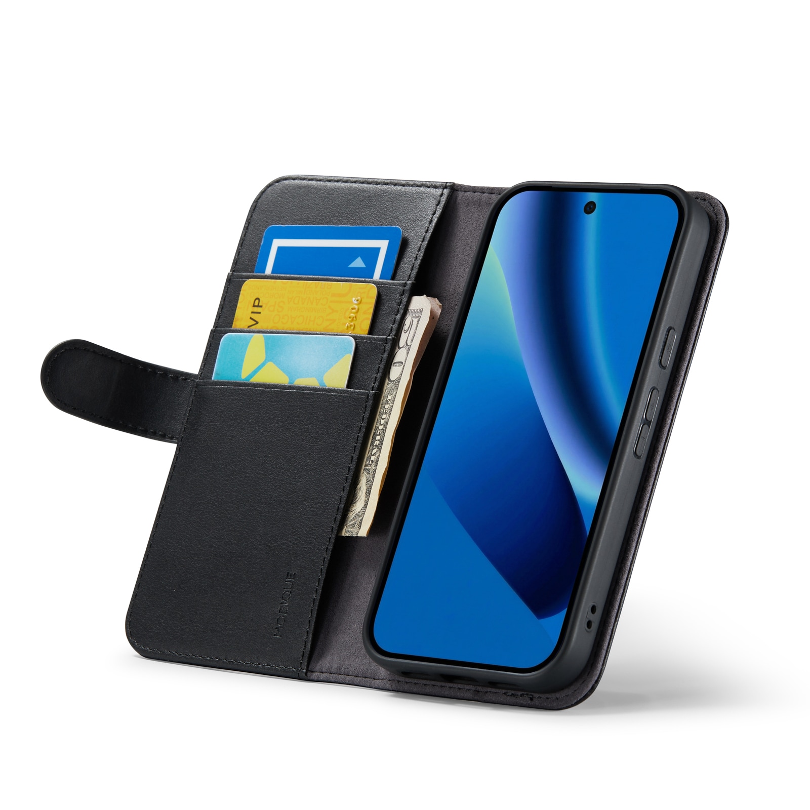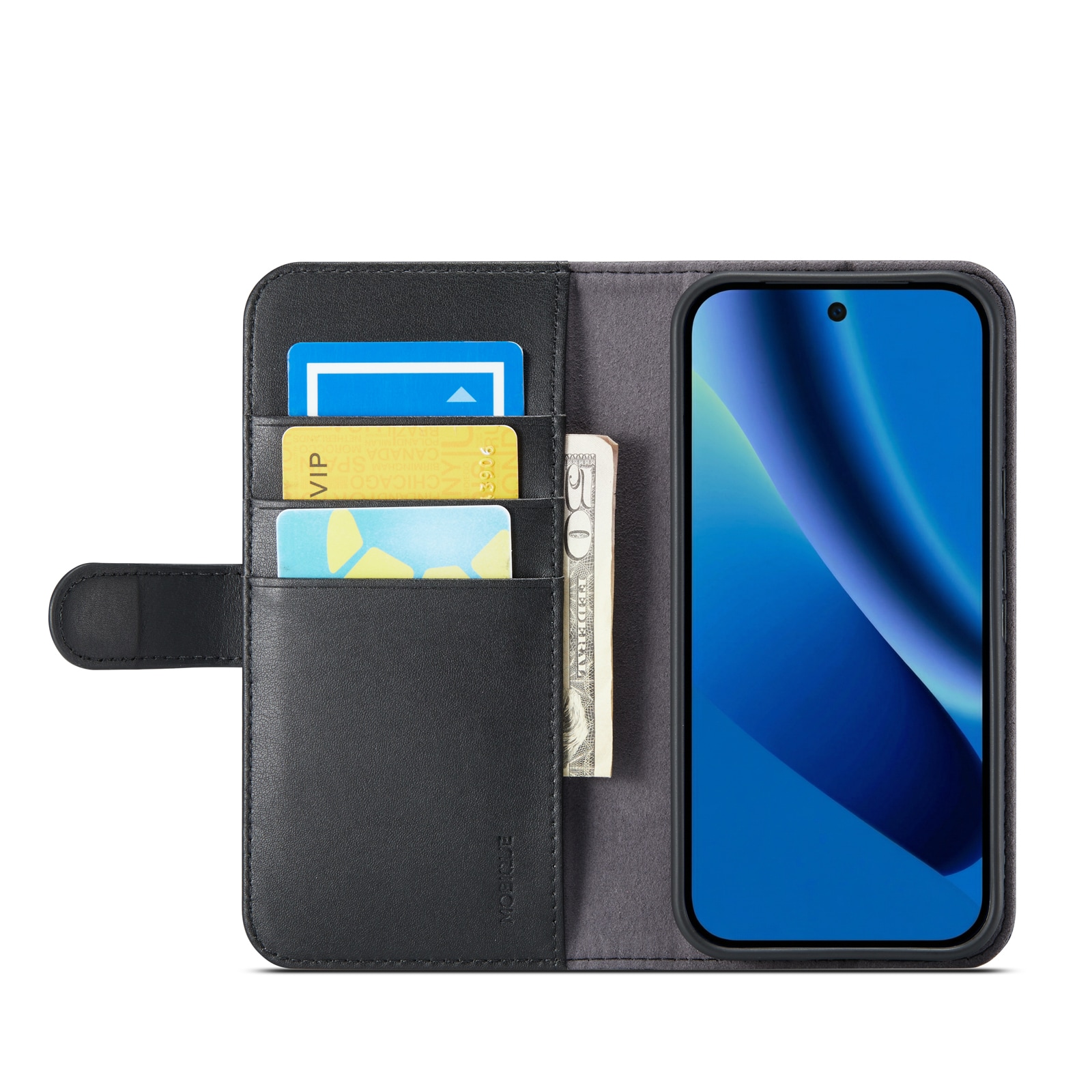Mobilfodral i äkta läder till Google Pixel 10a från Mobique. Fodralet skyddar runt hela din telefon och har en rymlig plånbok på insidan av locket. Plånboken är rymlig med tre kortfack och en sedelficka.