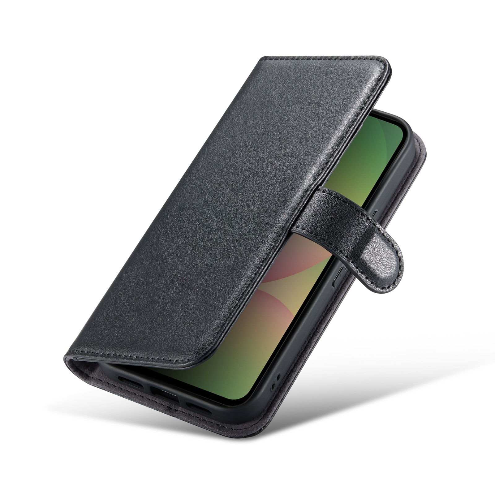 Telefonen sitter säkert fast i det stötdämpande TPU-skalet och döljs bakom locket som hålls stängt med ett magnetspänne. På så sätt skyddas både fram och baksida av telefonen mot skador.