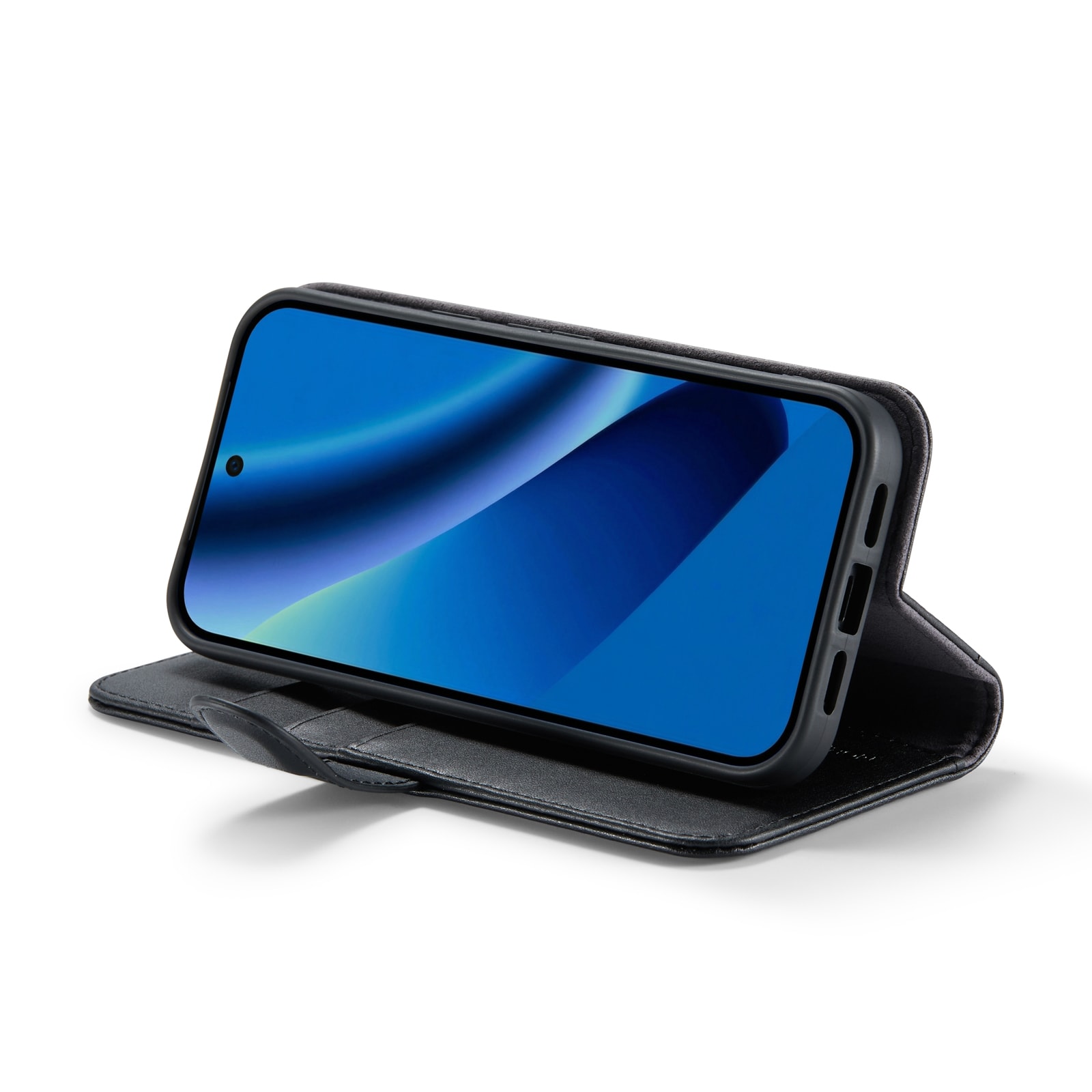 Plånboksfodralet kan bilda ett ställ för din telefon, perfekt när du eller din familj ska se på film eller serier.